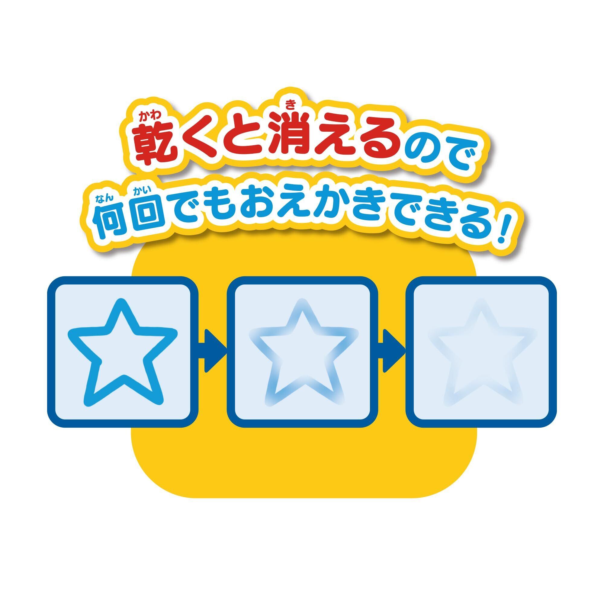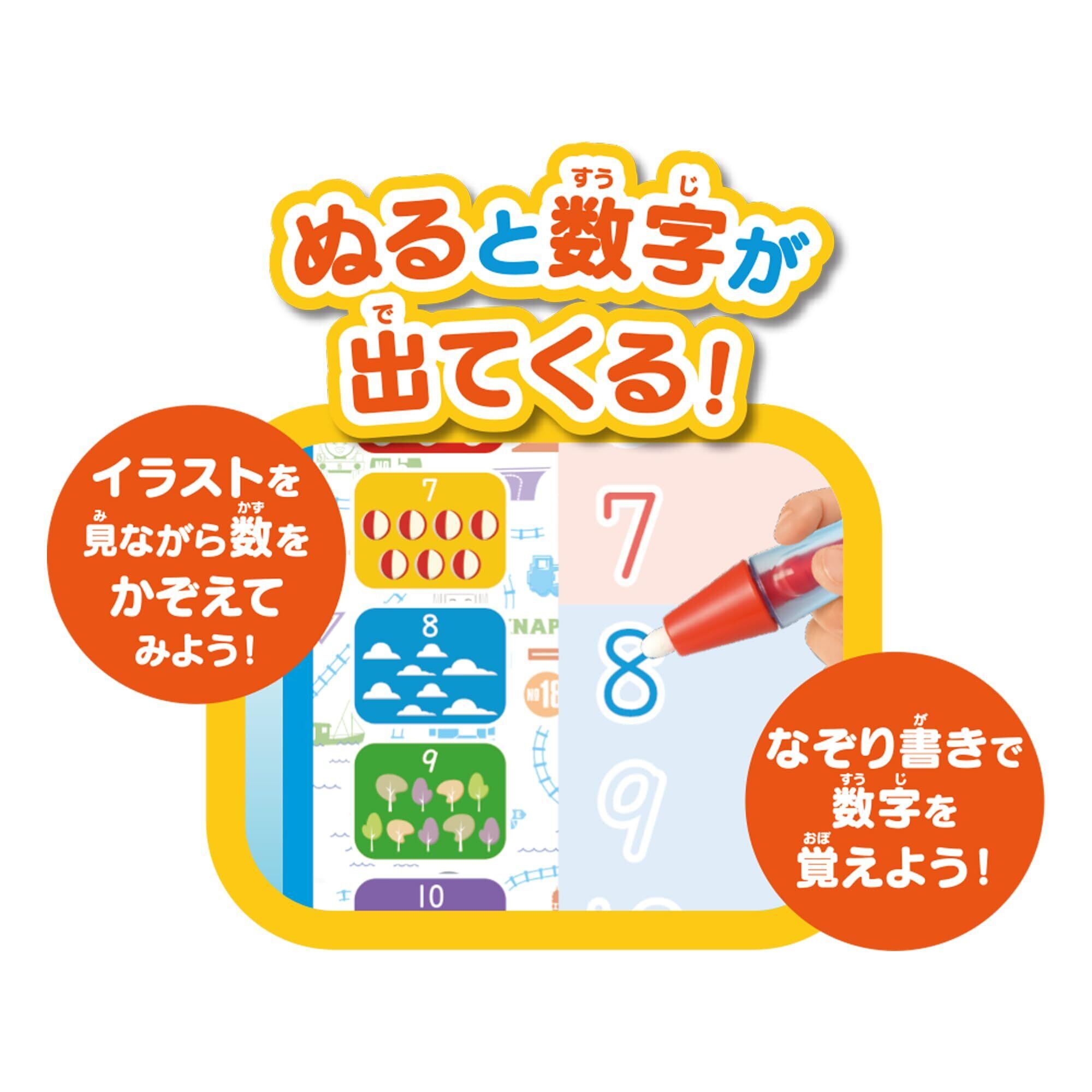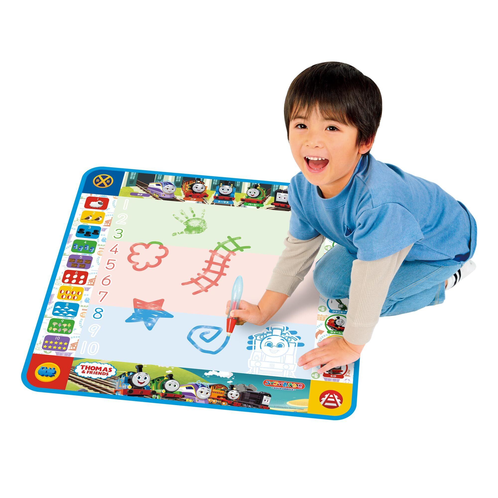あか・あお・みどりの3色でかける!カラフルなおえかきのシート!イラストの数字をなぞり書きすることで数字覚えができます。水でかくから汚れない!乾くと何回でもおえかきできます。トーマスと仲間たちのイラストがいっぱい!