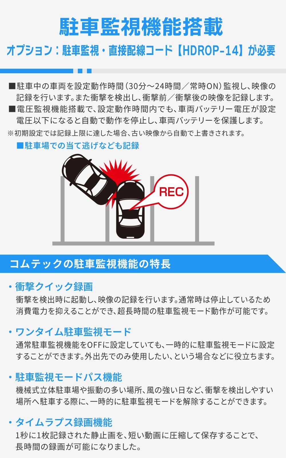 コムテック ドライブレコーダー ZDR018 前後2カメラ コンパクト 前後200万画素 Full HD GPS搭載 32GBmicroSDカード付属 後続車両接近お知らせ機能搭載 駐車監視機能 高速起動 3年保証 | BASE SHOP