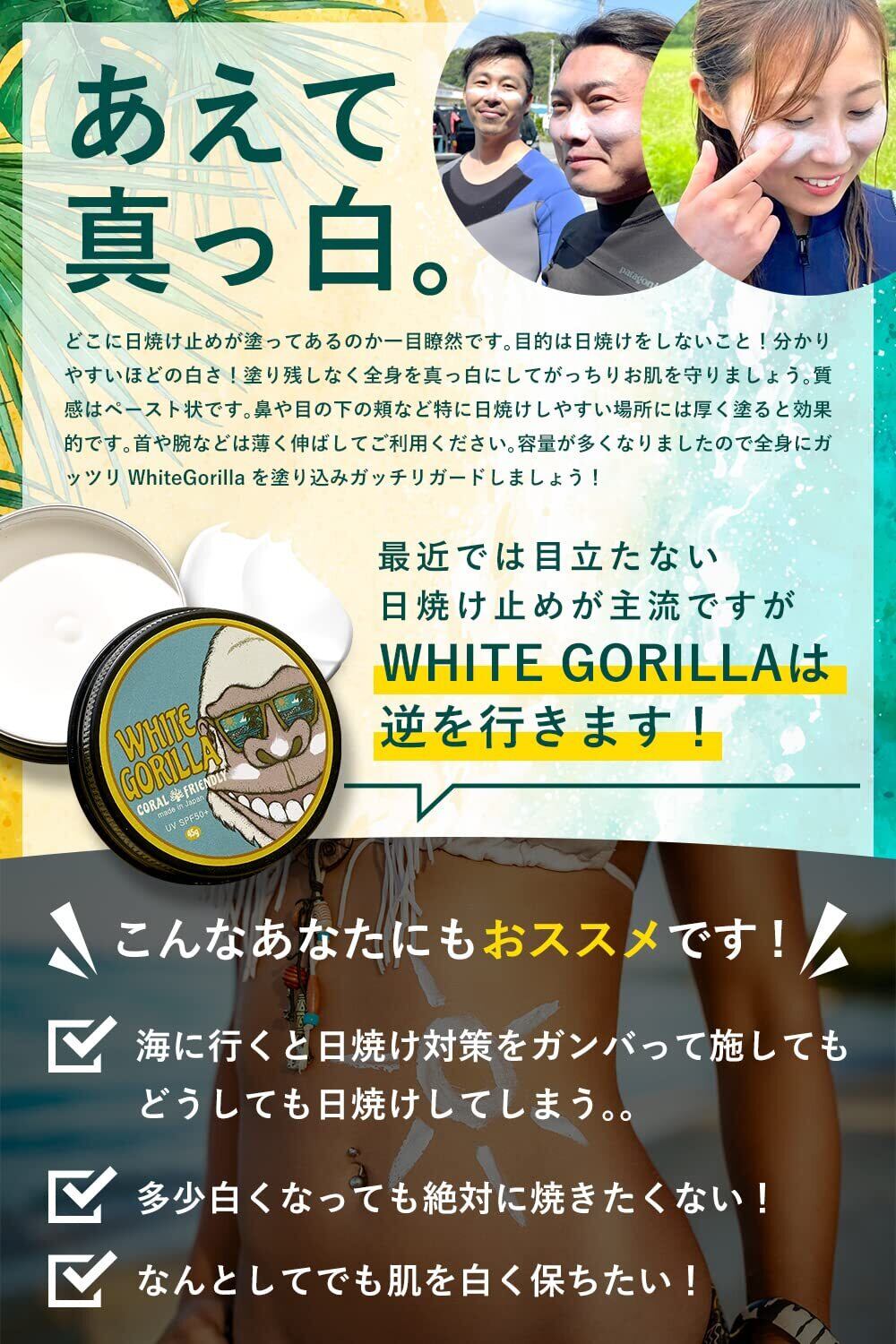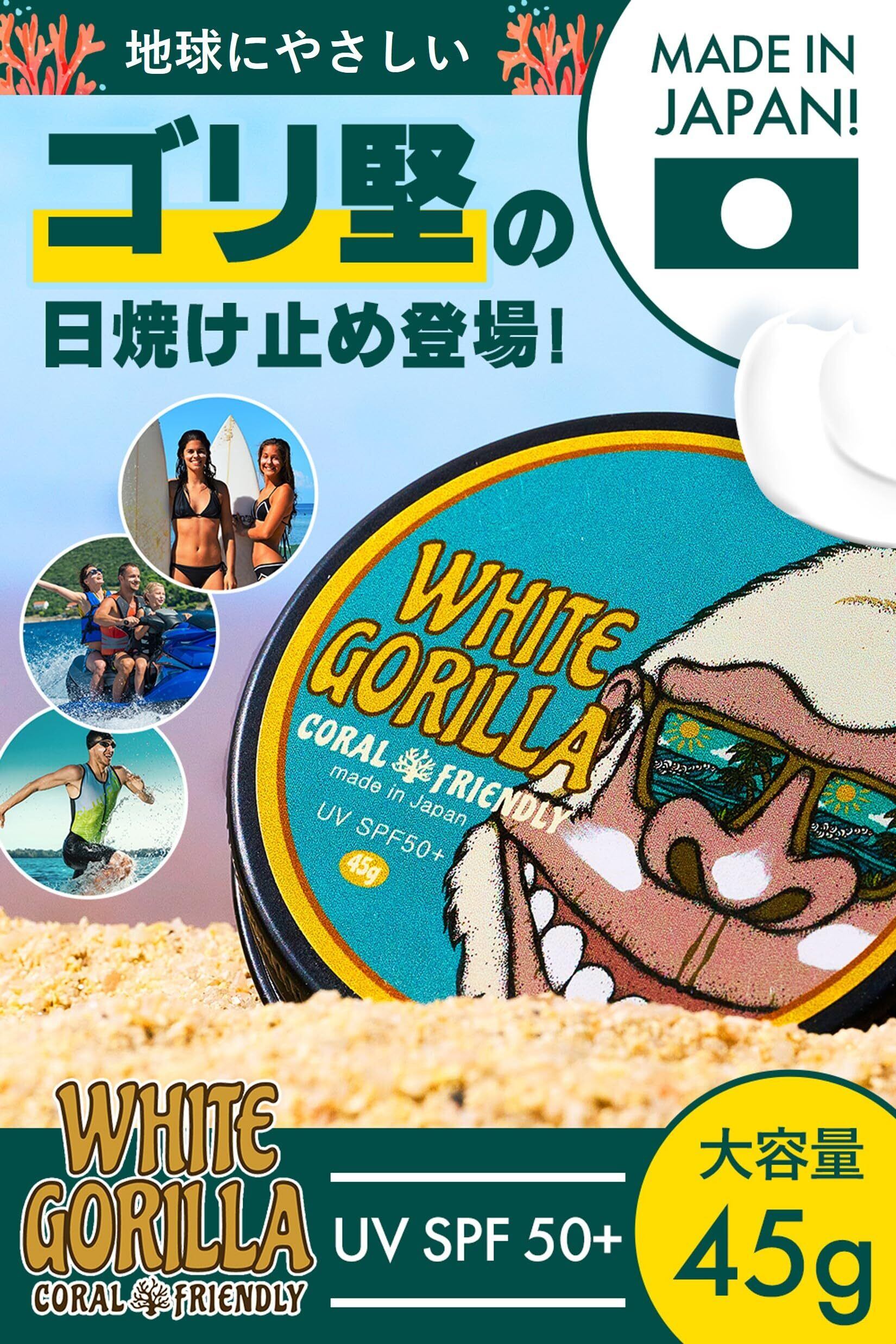 (White Gorilla ) ホワイトゴリラ UV バーム SPF50+ サンゴ礁を壊さない ウォータープルーフ 日焼け止め 固形 45g