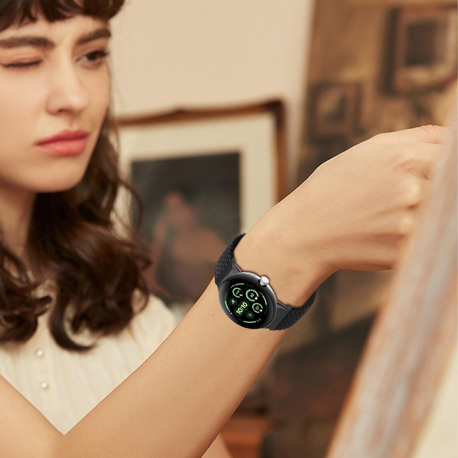 [RoSoki] Google Pixel Watch 3 45mm 対応 バンド ブレイデッド 編組 ソロループ スポーツバンド 柔らかいシリコーン糸混紡リサイクルヤーン素材 ストラップ 替えバンド 交換ベルト 弾性 軽量 柔軟性 調節可能 速乾性 頑丈 通気性 ストラップ 腕時計ストラップ 交換バンド 男女兼用 Google Pixel Watch 3 45mm 用( ブラック