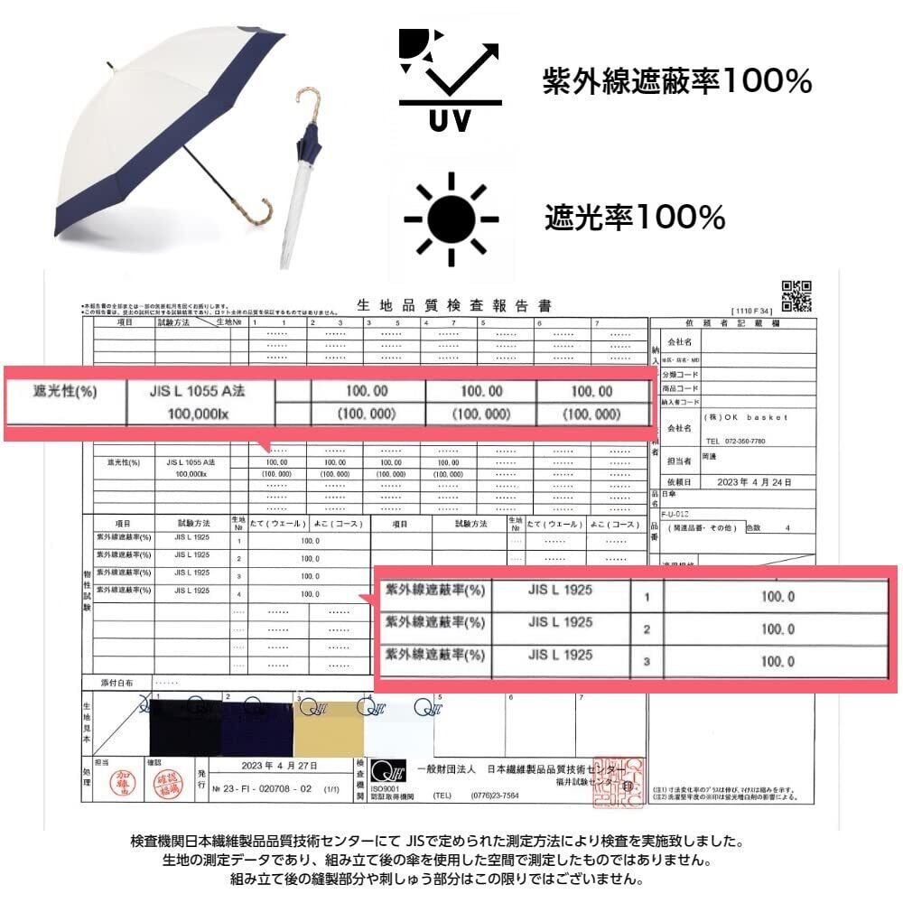 日傘 長傘 完全遮光 UVカット 傘 レディース 撥水 軽量 晴雨兼用 バンブー 持ち手 おしゃれ かわいい 耐風 風に強い 遮光率100% UVカット 率99.9%以上 UPF50+ 【OK basket】 | BASE SHOP