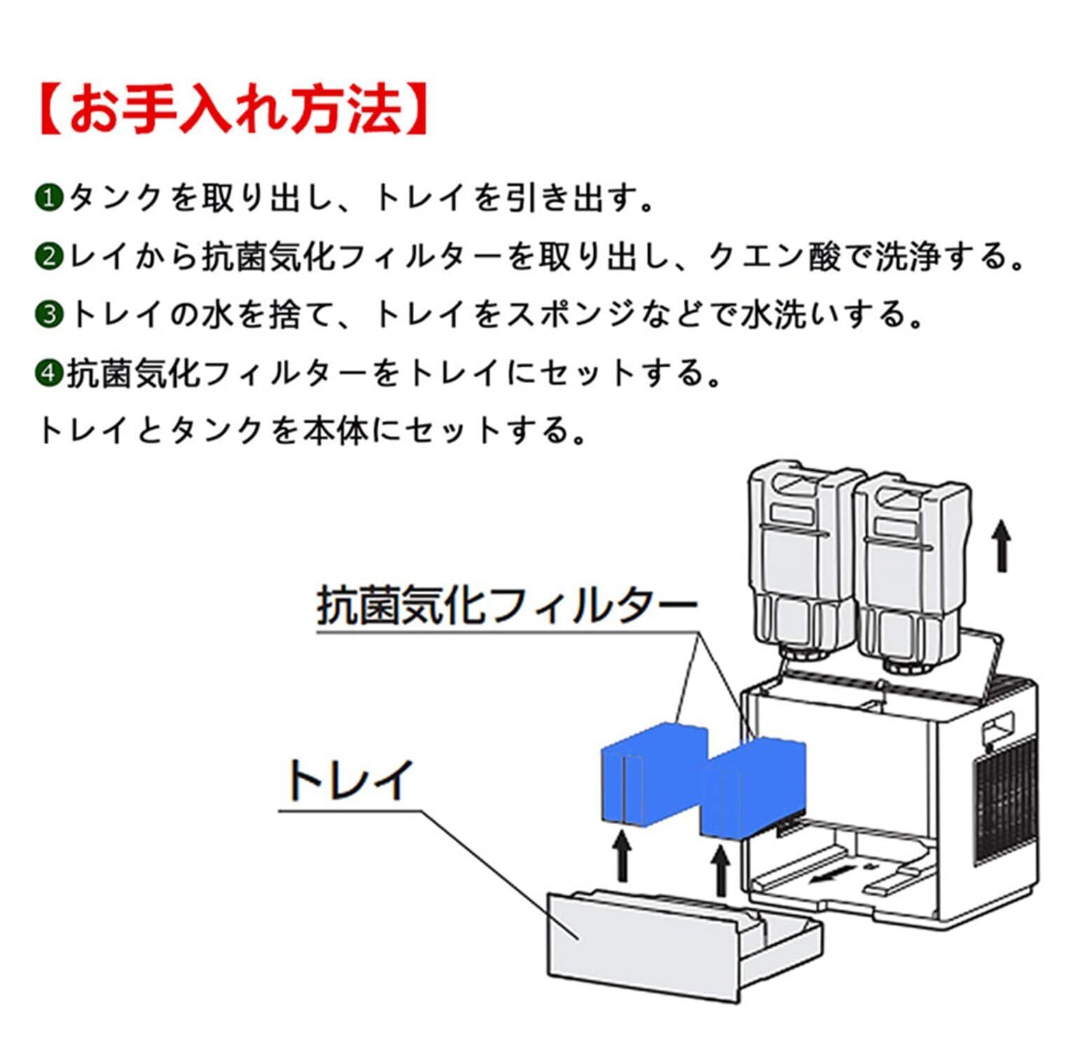 【抗菌、防カビ方法】: フィルターに抗菌・防カビ剤を含浸、トレイ内の雑菌・カビの繁殖を抑えます。
