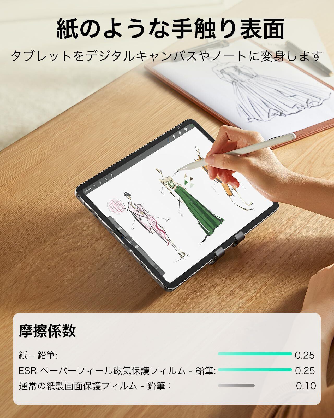 ESR iPad Air 第5世代 フィルム 2022、iPad Air 第4世代 2020、iPad Pro 11インチ(2022/2021/2020/2018)専用 ペーパーライクフィルム 着脱式 マグネットスクリーン保護フィルム 紙のような描き心地保護フィルム 再利用可能 強化フィルムと互換性あり マット仕上げ