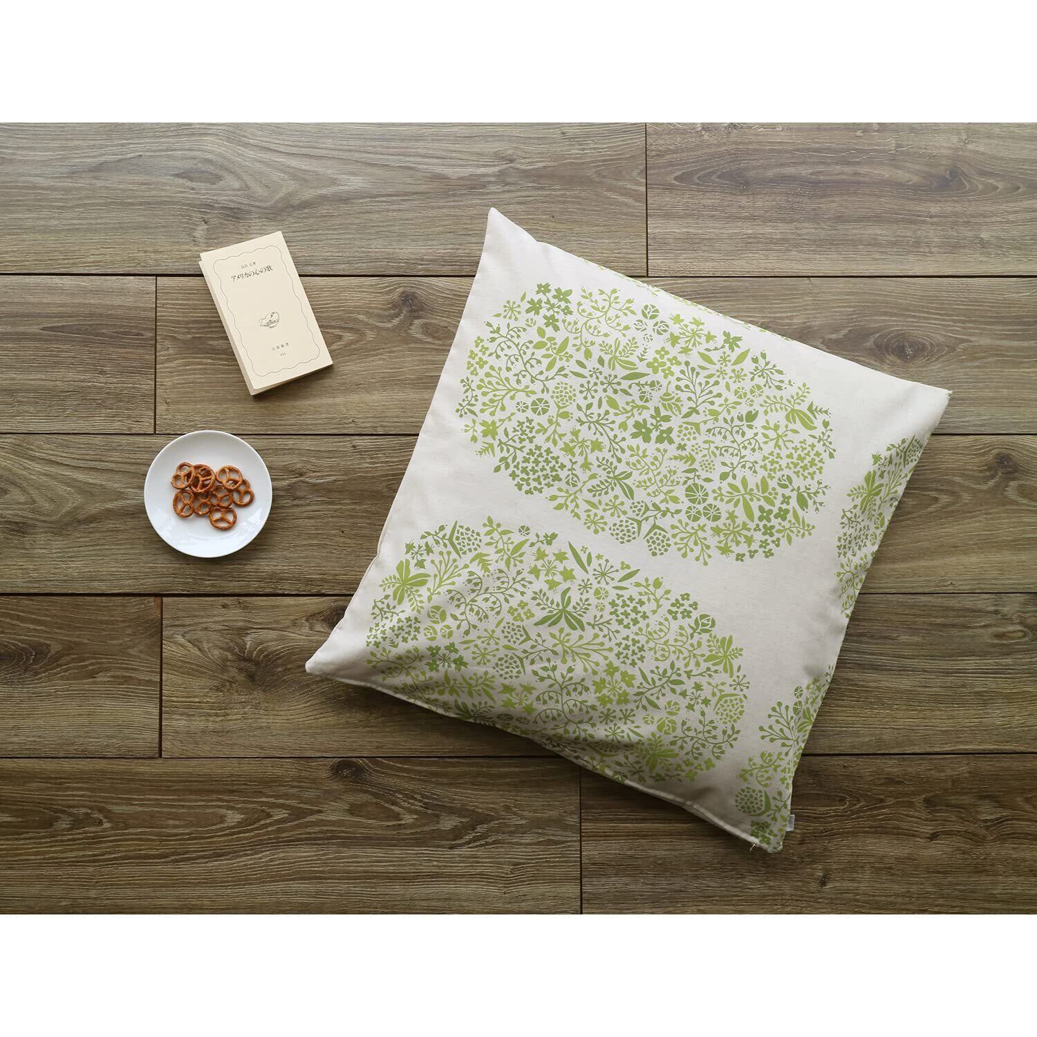 クォーターリポート 綿麻素材 ざぶとん ( 座布団 )カバー パラディス グリーン 約55×59cm 銘仙判 花柄【 日本製 】
