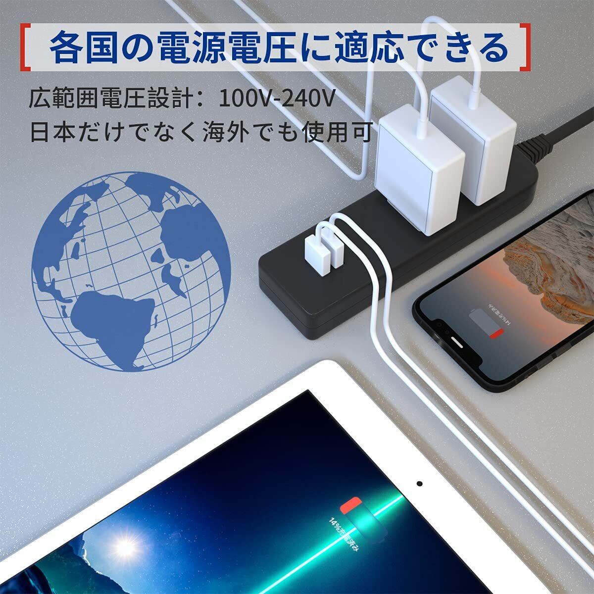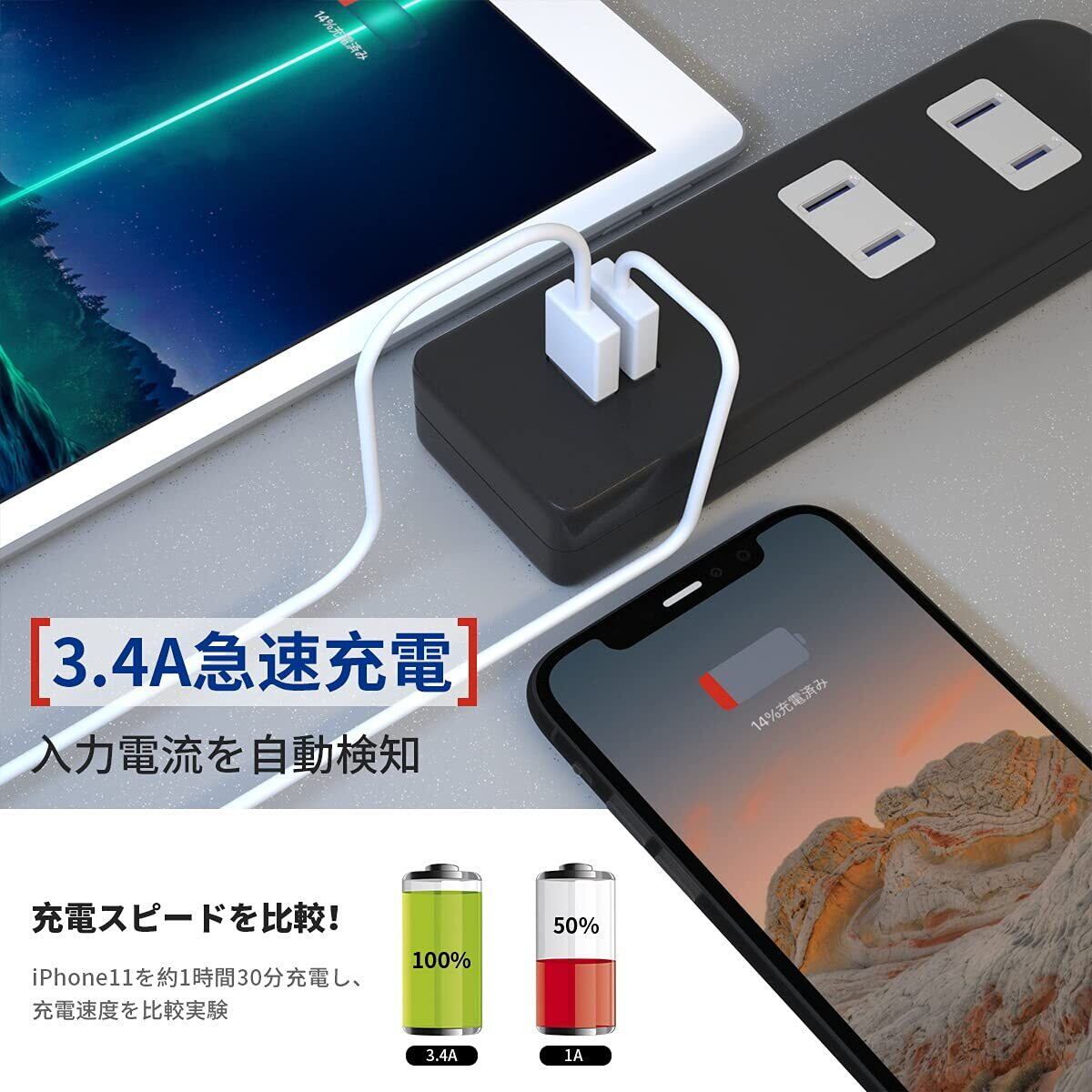USBコンセント 延長コード 急速充電 電源タップ テーブルタップ おしゃれ PSE認証済 AC 2個口 USB 2ポート 外出 旅行 オフィス 自宅 (2M, ブラック)