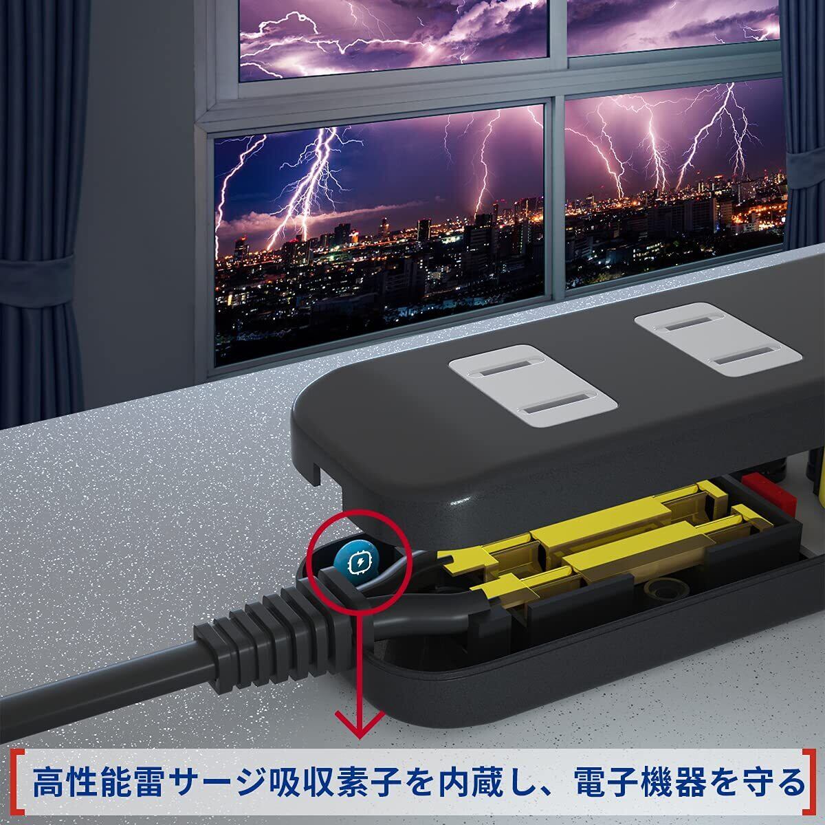 「雷対策は電源タップで」最大電圧6000Vの高性能雷サージ吸収素子バリスタを内臓。雷によるダメージを軽減し、大切な機器やデータを保護します。※完全内臓型、作動確認ランプは付いておりません。