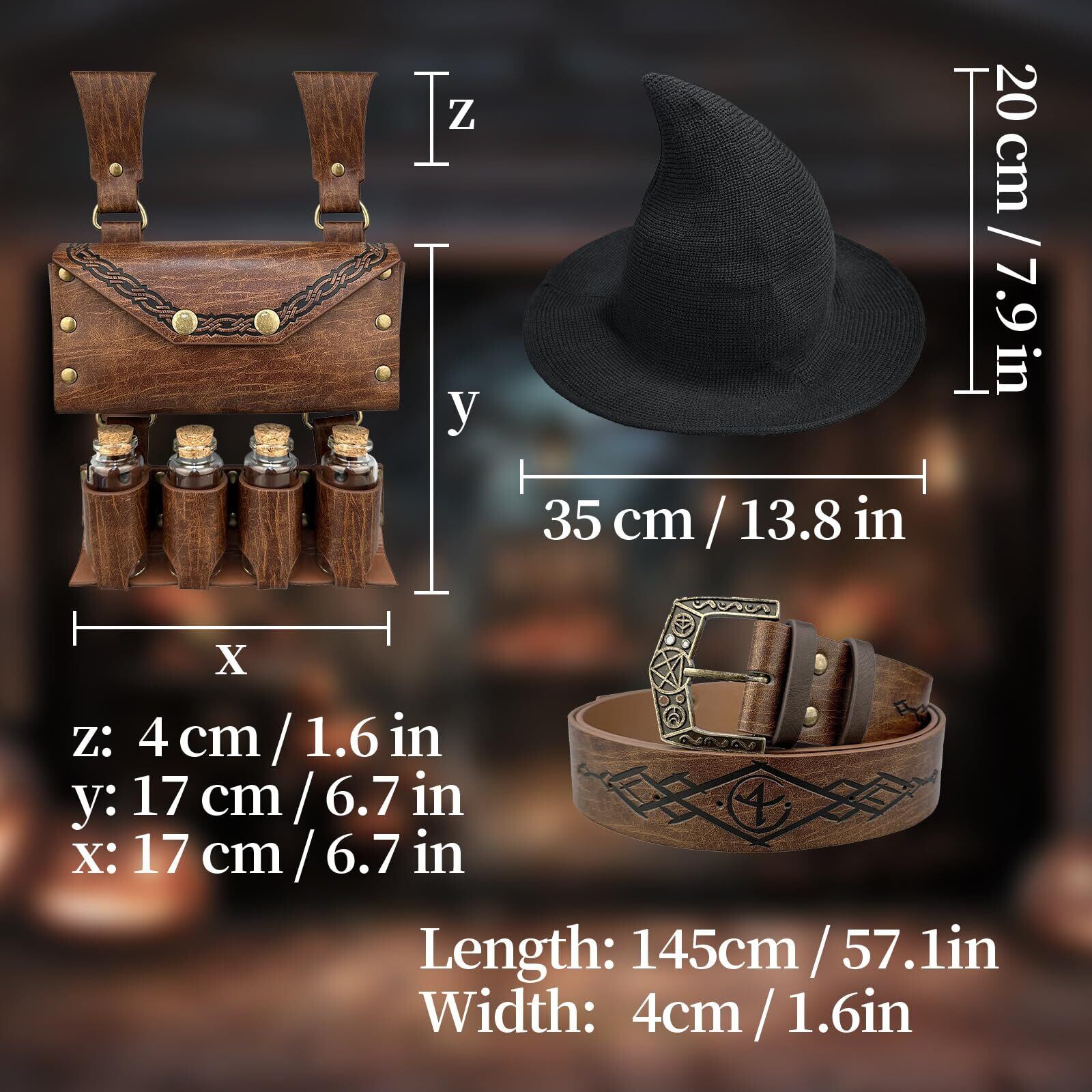 [EpicCos] 3PCs魔女帽子錬金術ベルトポーチと4コルクポーションボトル, レンフェアーのための気まぐれなルネサンス魔女ベルトアクセサリー