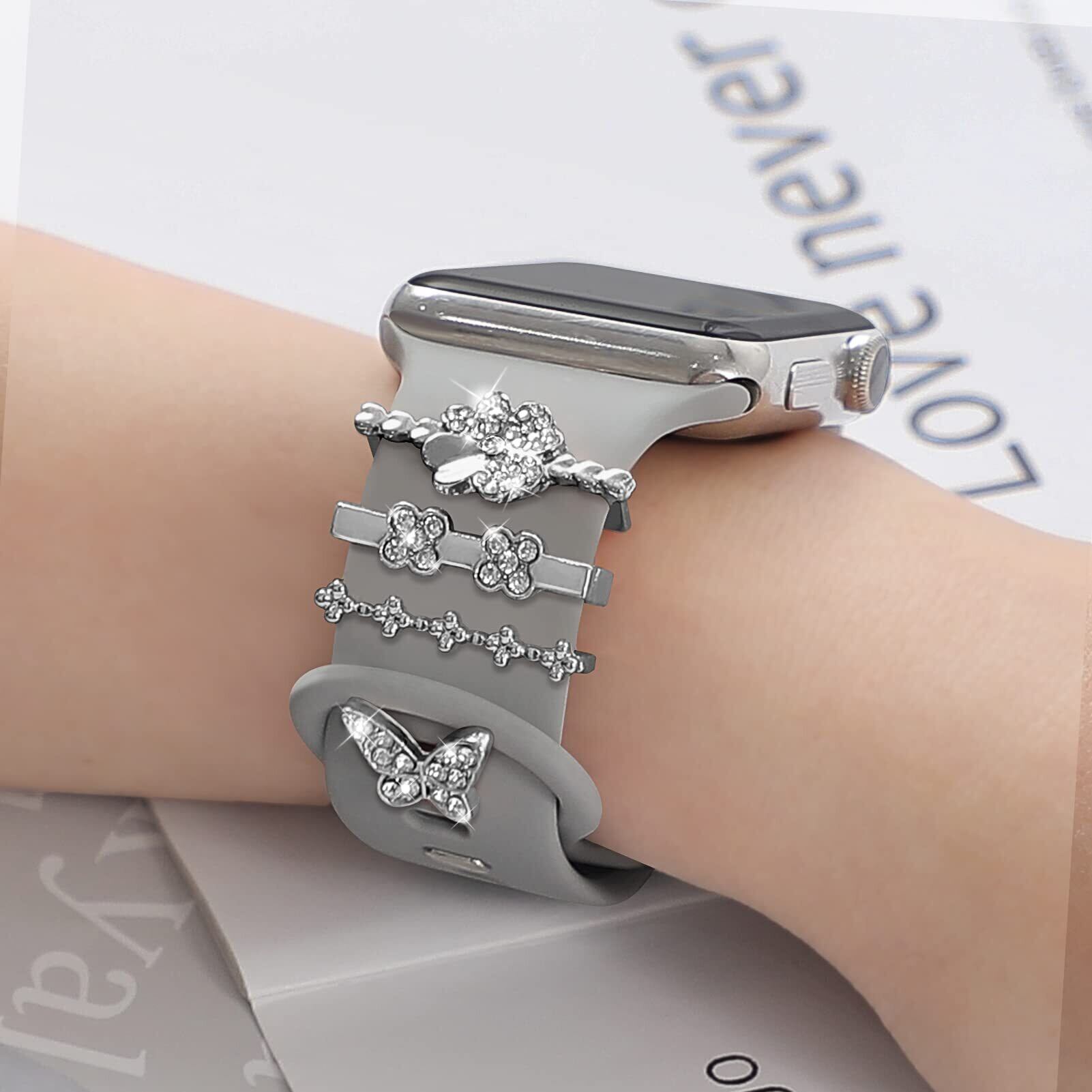 チャーム リングコンパチブルアップルウォッチ バンド49mm 44mm 40mm 45mm 41mm 42mm 38mmメタルチャームレディース、キラキラ、人気、DIY 、かわいい、Apple Watch Ultra チャーム、iWatch Ultra SE SE2 8 7 6 5 4 3 2 1 用スポーツバンドチャームアクセサリー ローズゴールド女性(タイプP:シルバー) | BASE SHOP