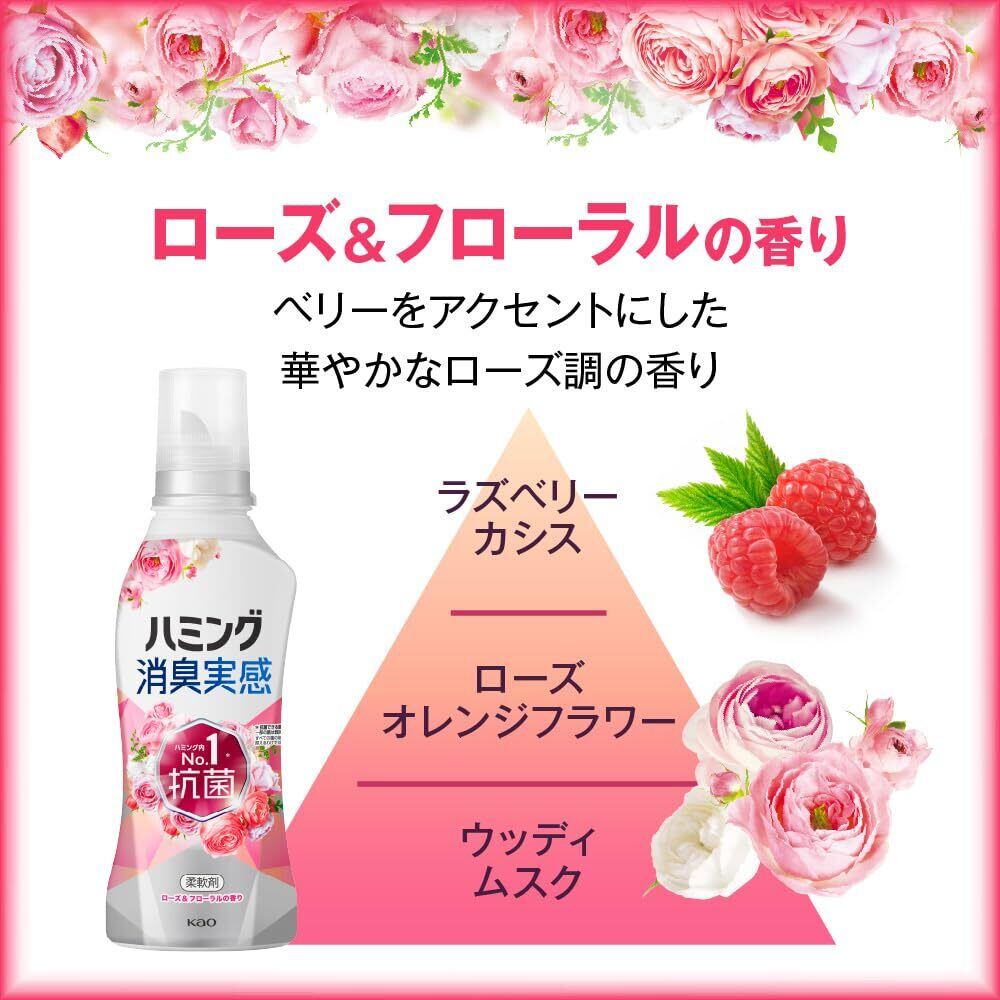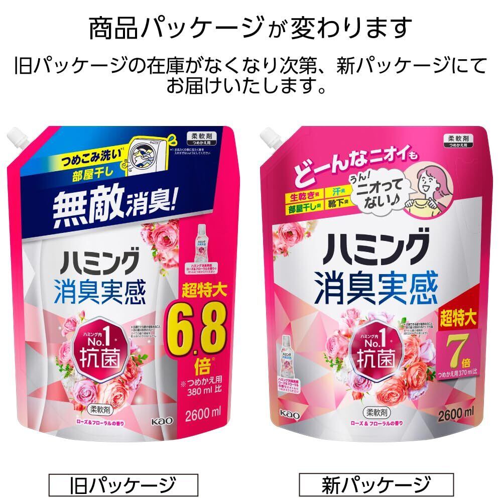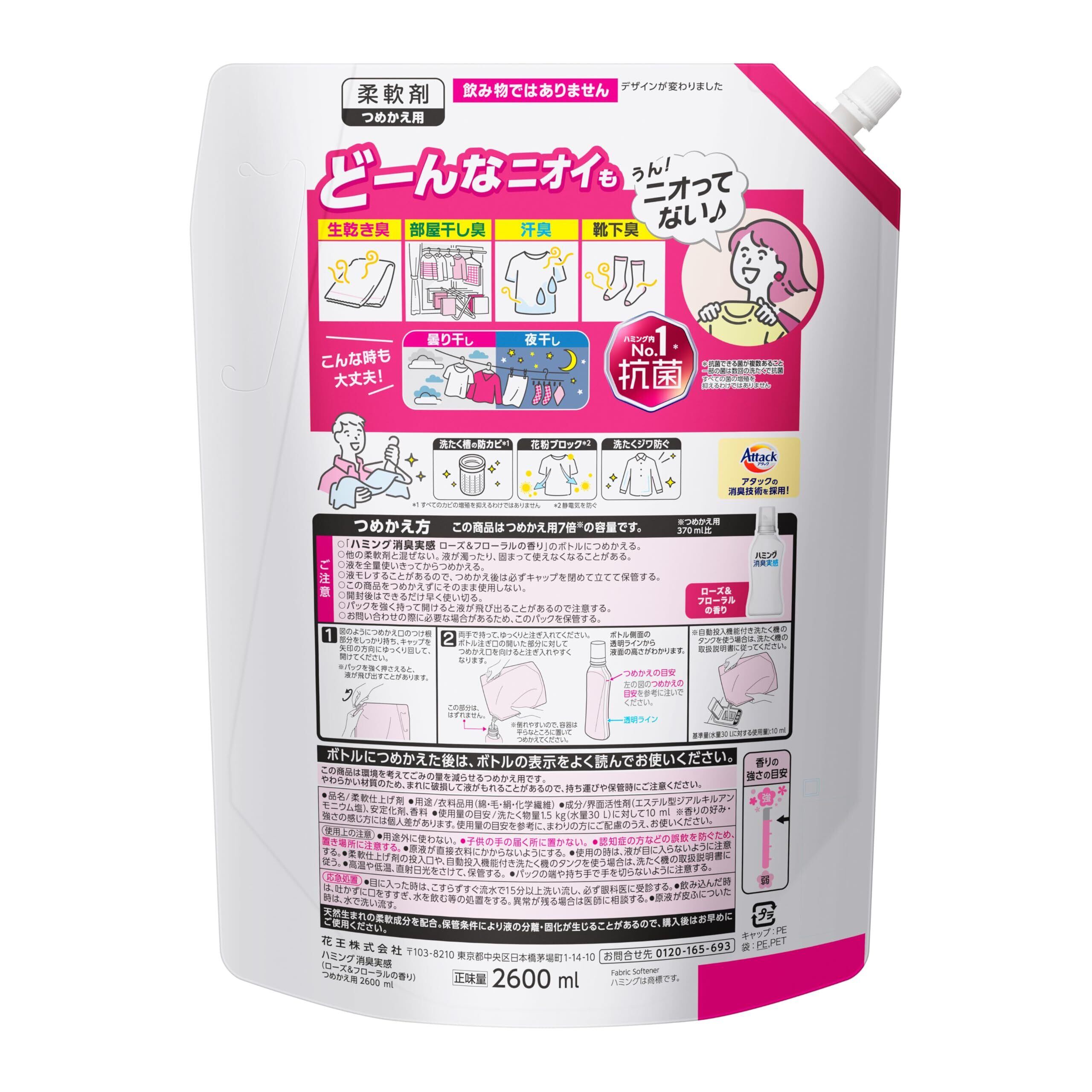 ハミング 【大容量】消臭実感 柔軟剤 つめこみ洗いも、部屋干しも、無敵消臭! 内No.1抗菌 ローズ&フローラルの香り つめかえ用 2,600ml