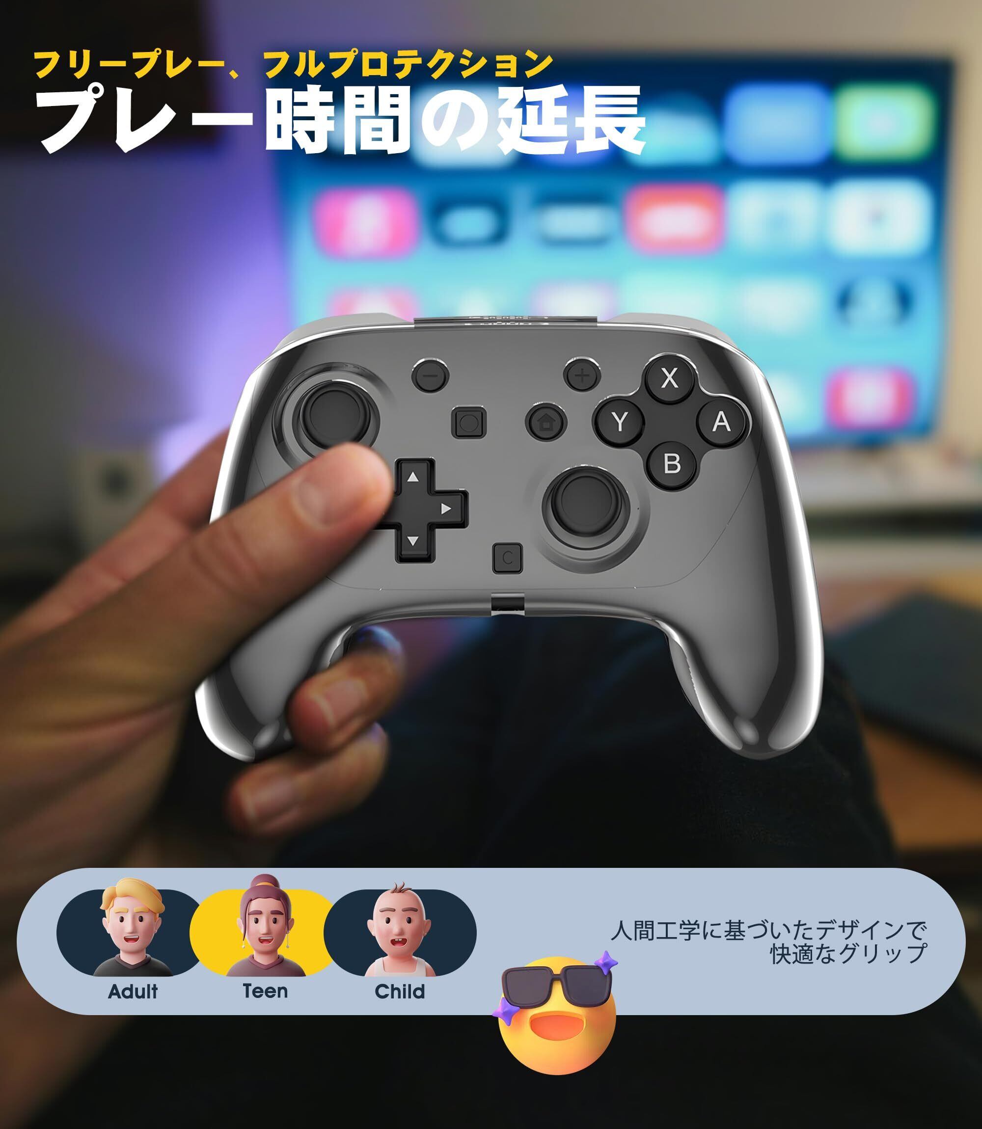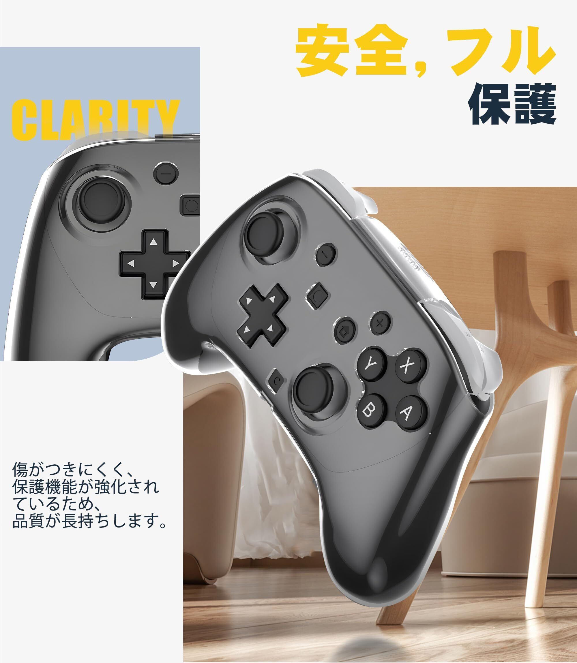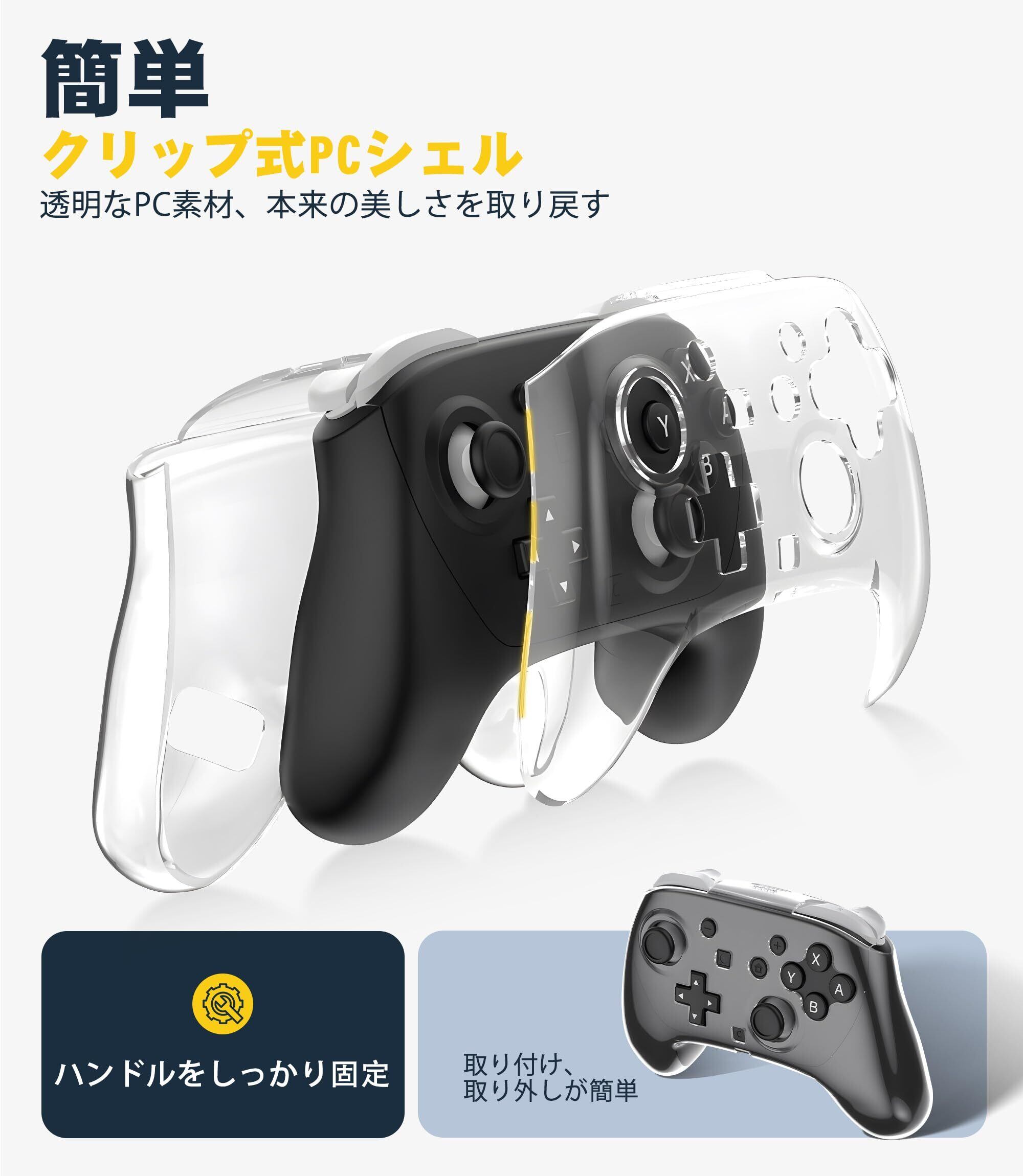 Newzerol Switch2 Proコントローラー用ケースカバー PC素材 スイッチ2プロコン専用透明プロテクター 衝撃に強い 滑り止め クリスタルクリア