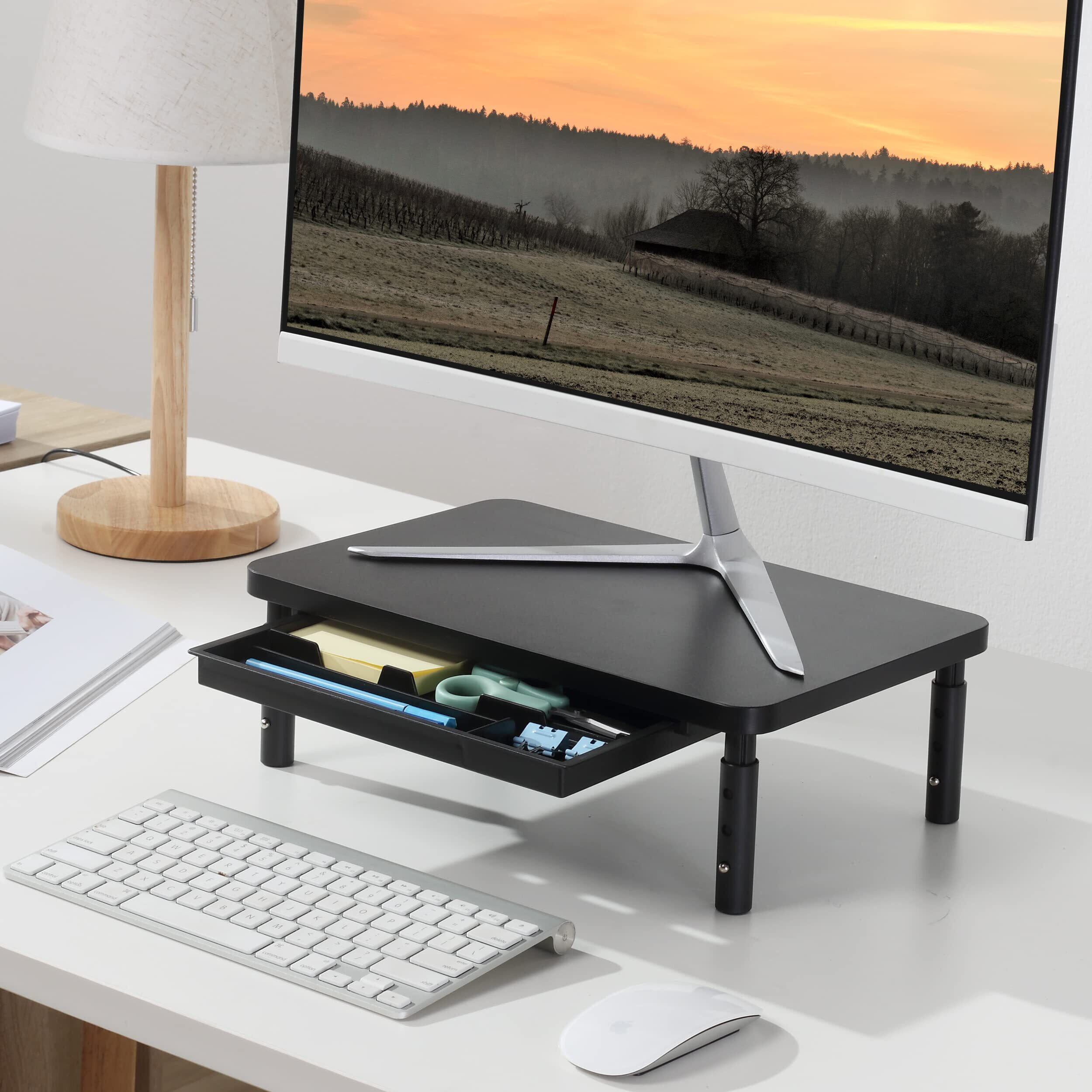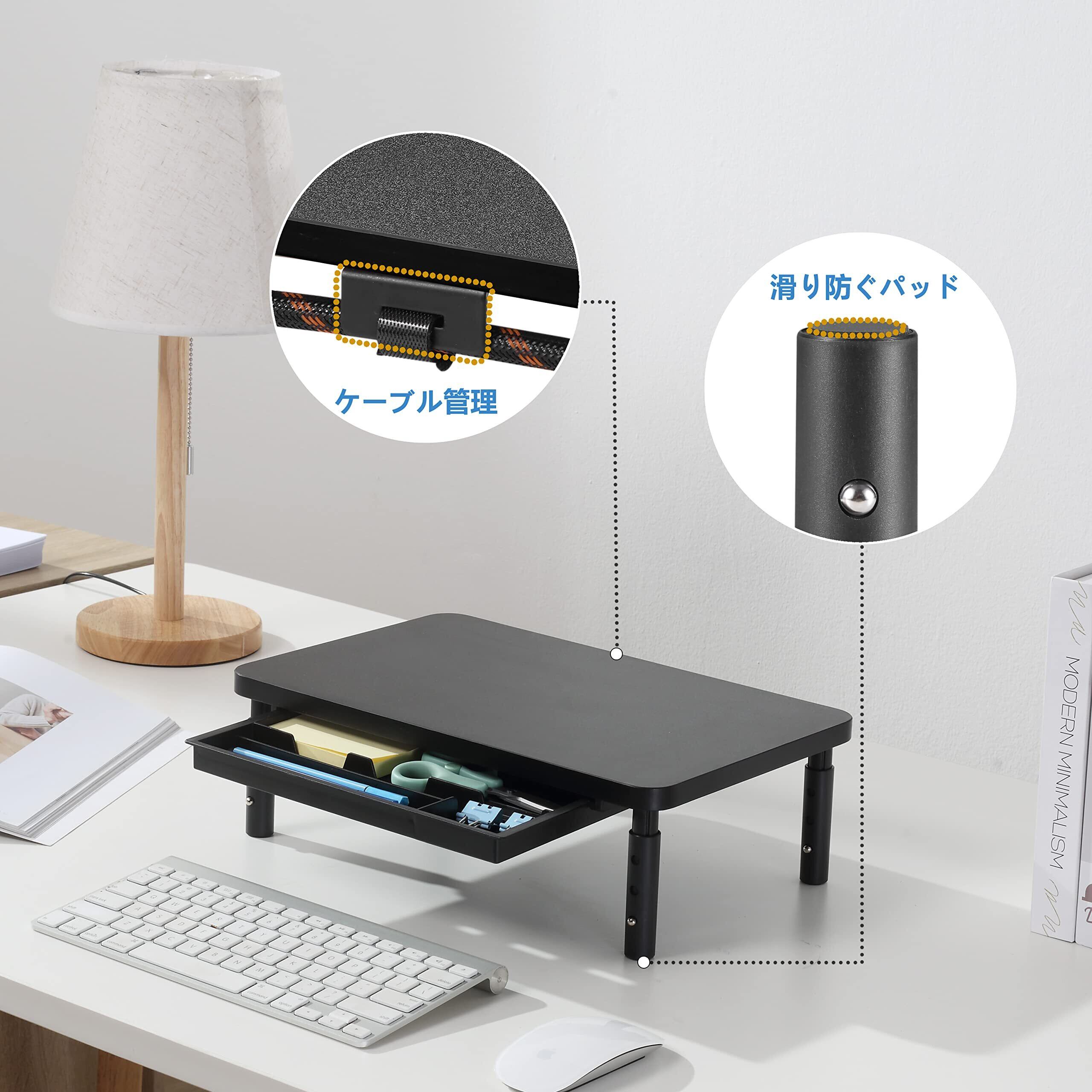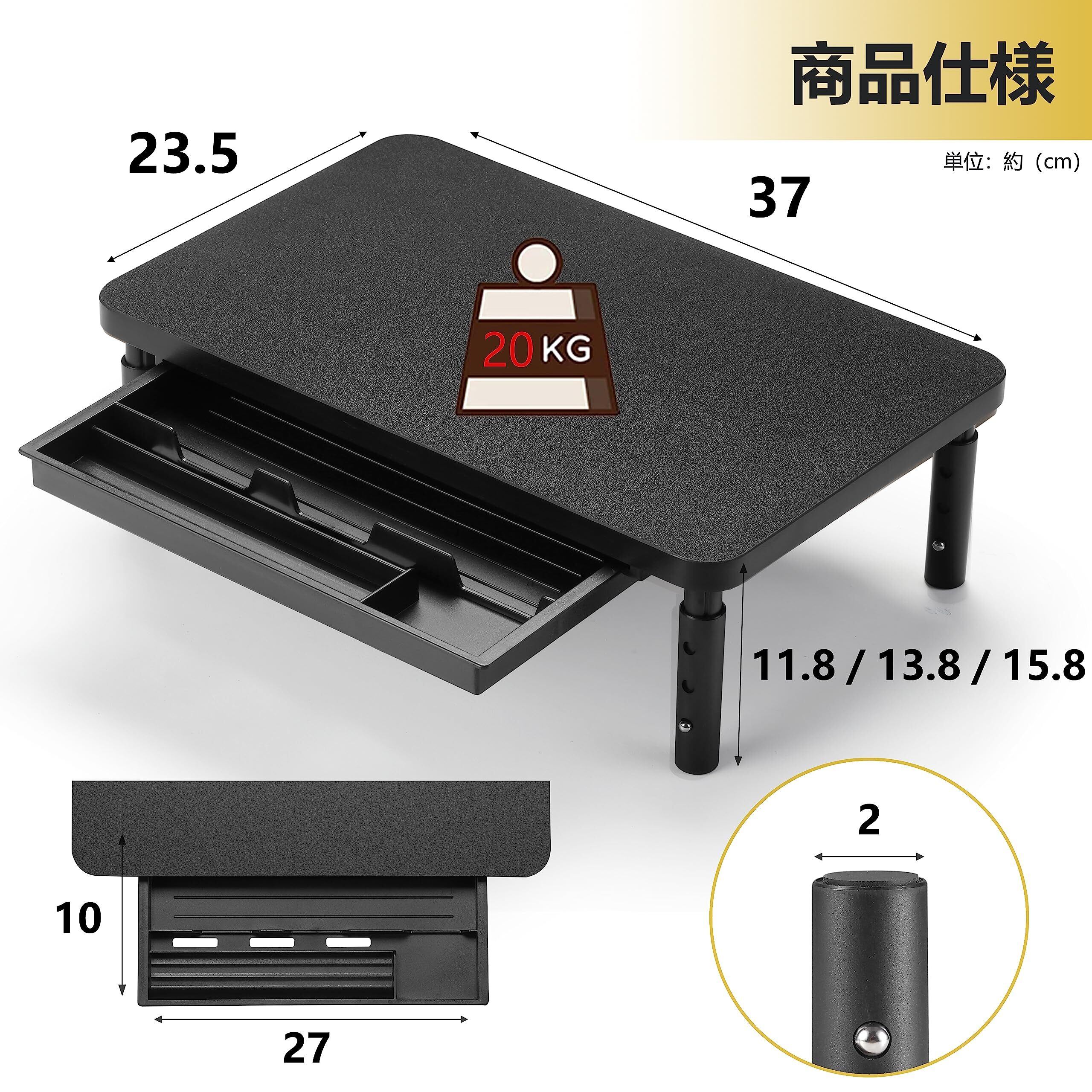 ETHU モニター台 モニタースタンド 高さ調整 机上台 引き出し付き パソコン台 組立簡単 姿勢改善 猫背防止 スマホホルダー リモートワーク対策 ブラック