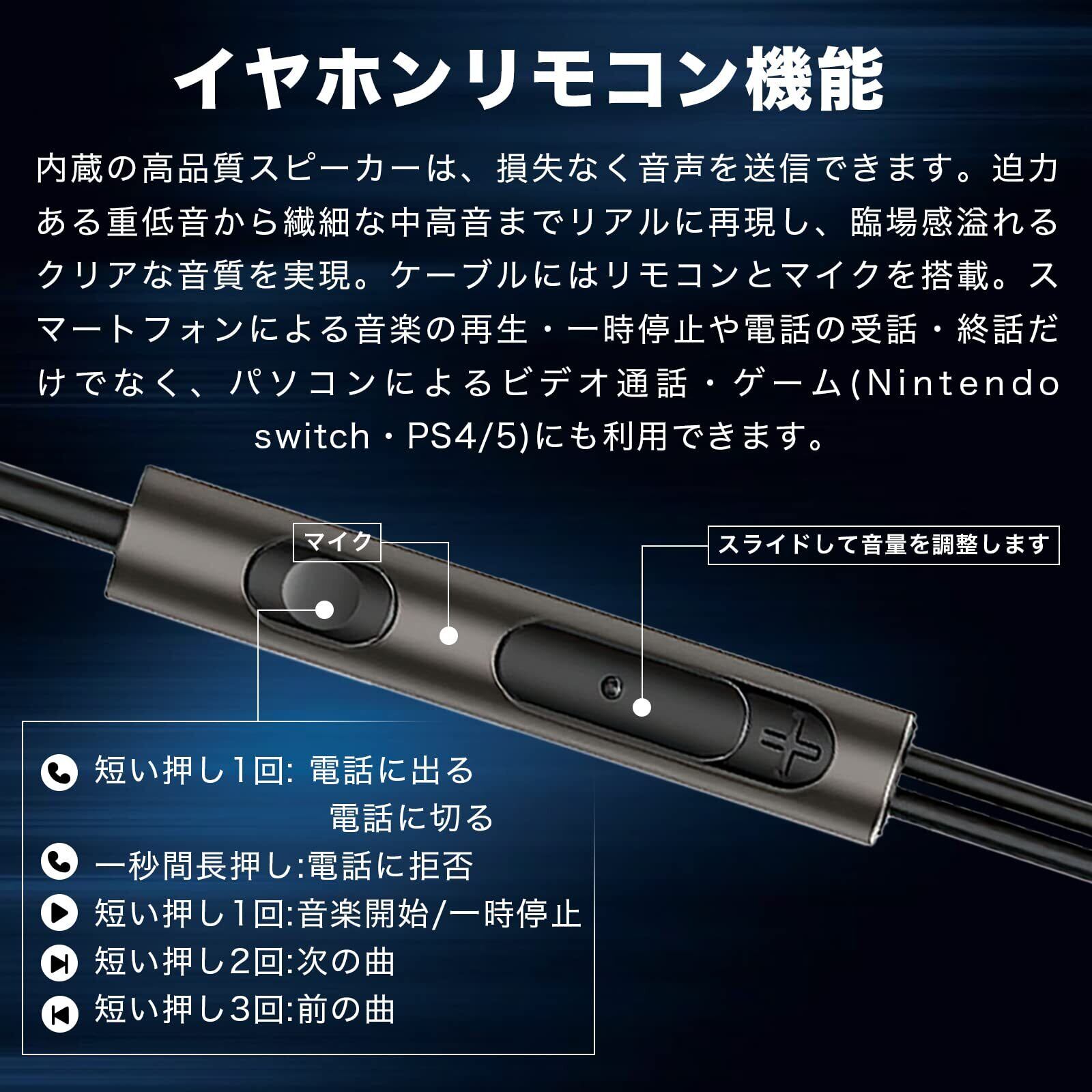 【相手にクリアな音声、流暢な通話体験を】イヤホンにはリモコンとマイクを搭載。スマートフォンによる音楽の再生・一時停止や電話の受話・終話だけでなく、仕事(オンライン会議・テレワーク)接続してWet会議にも最適です。有線なので、優れた高音質再生ができるのも魅力です。遅延を気にせずゲームや動画を楽しむことができます。Bluetooth接続の必要はない、電話にそのまま接続するだけですぐに使えます。