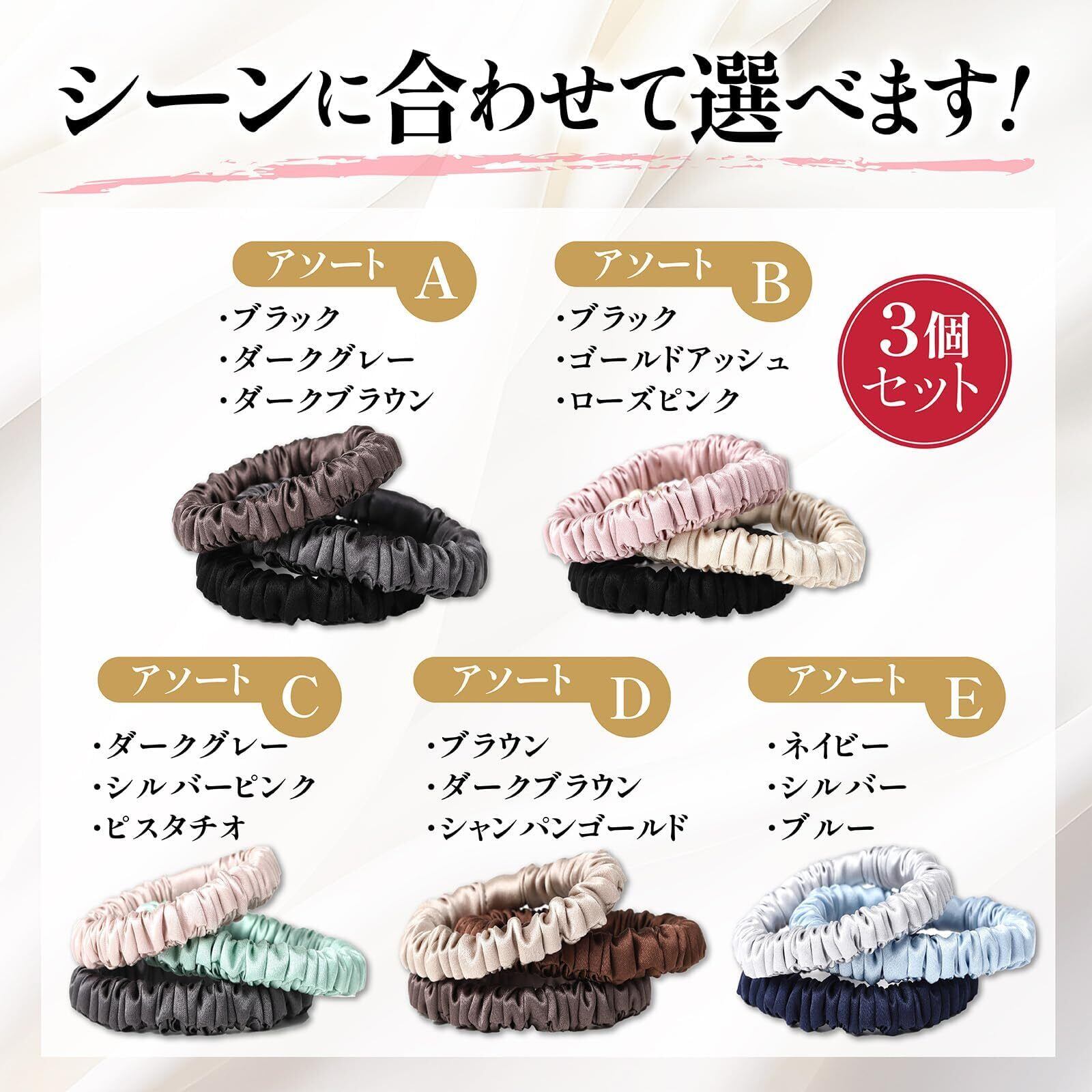【ヘアケアのプロ監修】 シルク ヘアゴム シュシュ 髪ゴム シルクゴム 跡がつかない SILK100% おしゃれ 太め 3個セット (ブラック)