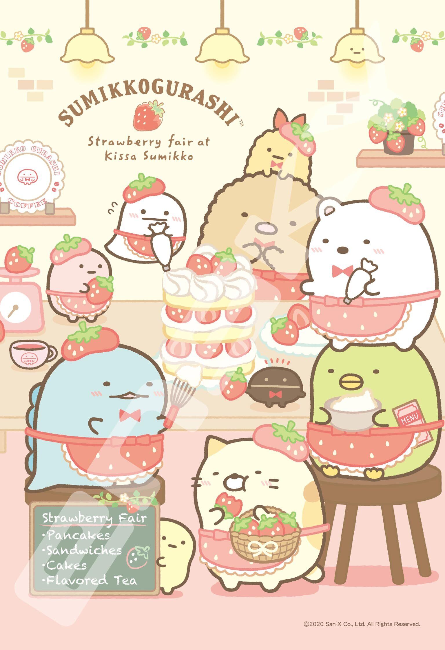 すみっコぐらし「いちごフェア」柄が300ピースパズルで登場!喫茶すみっコで「いちごフェア」を開催することになりました。まめマスターとおばけを手伝ってすみっコたちも大活躍!