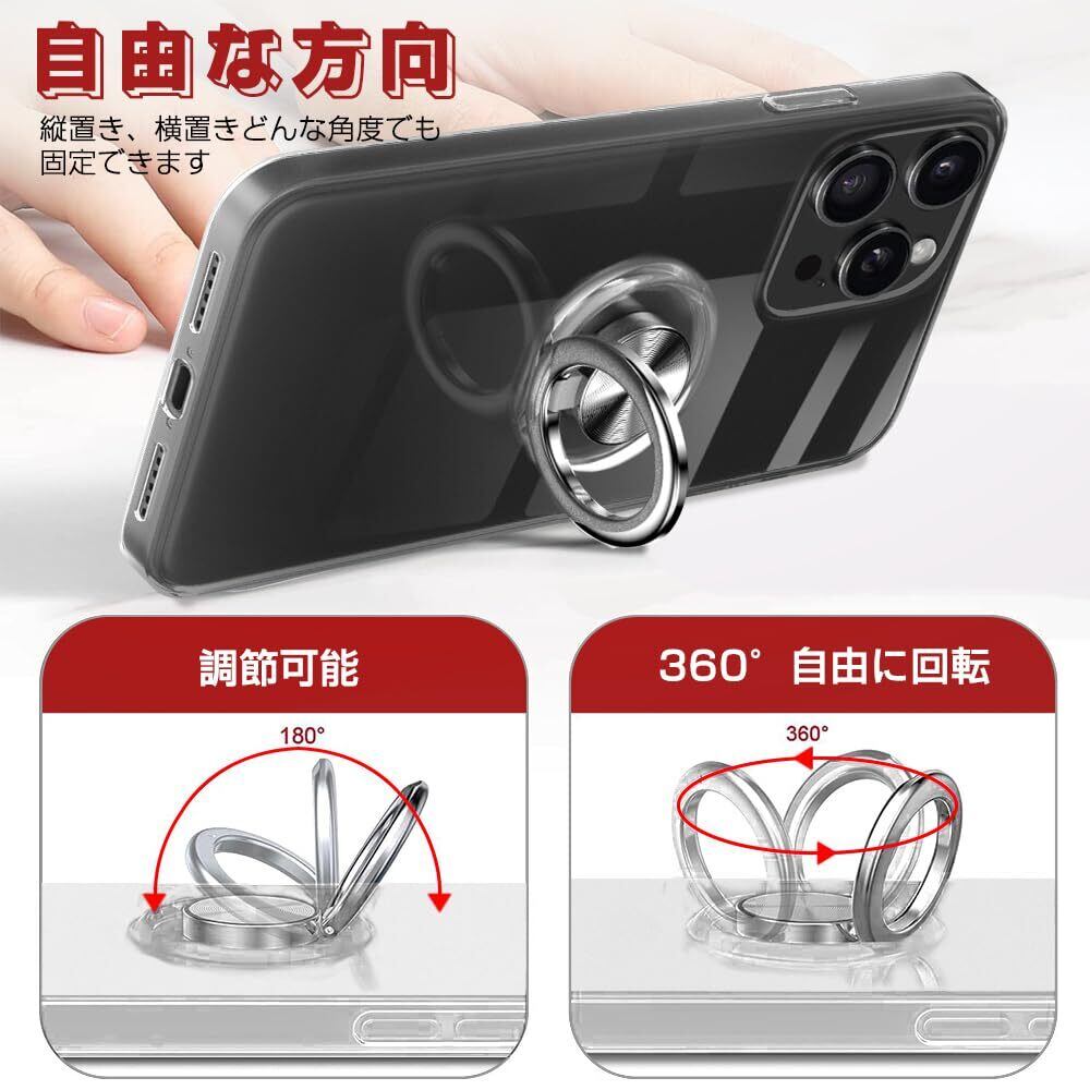 iPhone 15 Pro 用 ケース リング クリア アイフォン 15 Pro 透明 ケース リング付き スタンド機能 薄型 耐衝撃 ストラップホール付き すり傷防止 滑り止め 耐久 クリスタル・クリア