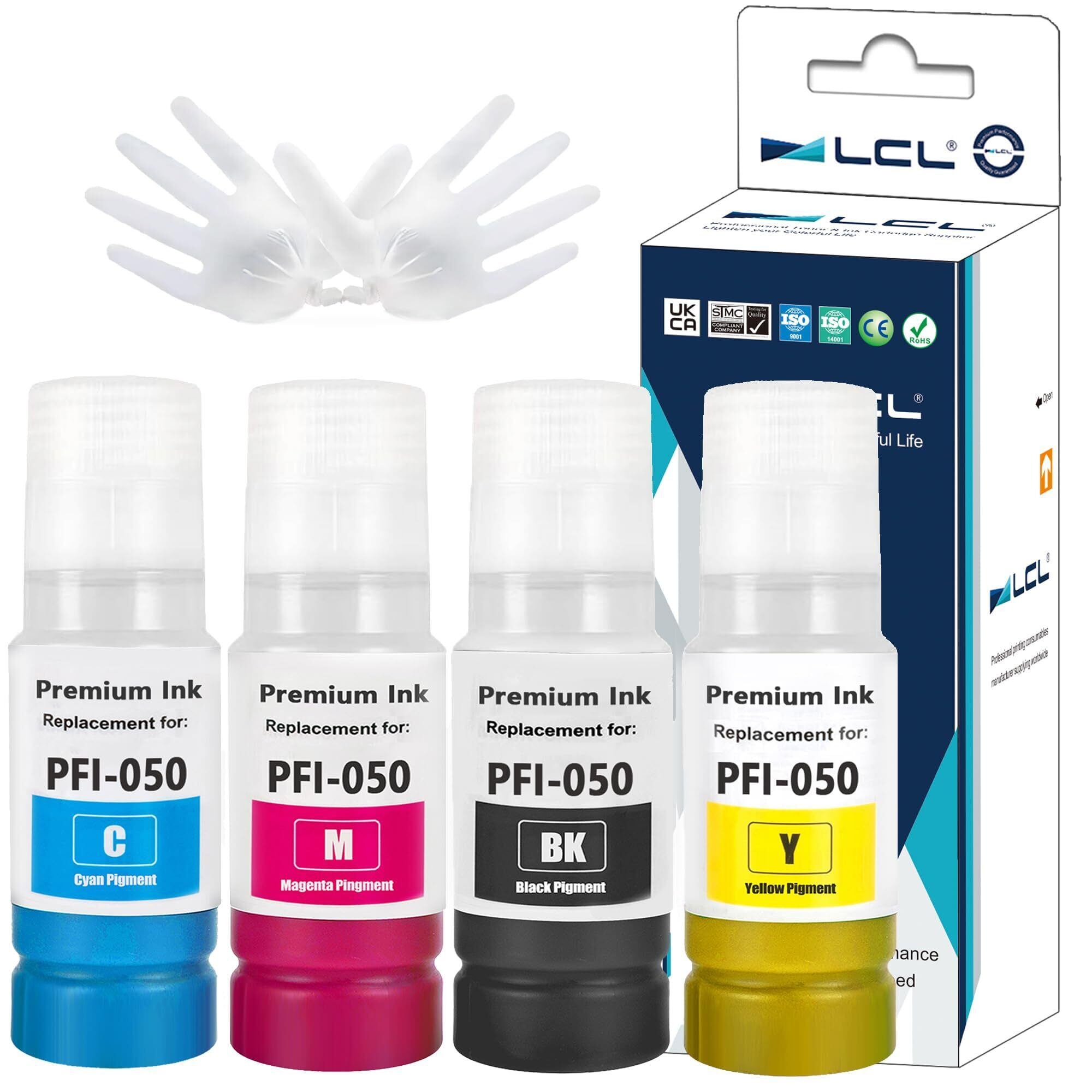 LCL Canon用 キャノン用 PFI-050 PFI-050BK PFI-050C PFI-050M PFI-050Y (4色セット ブラック シアン マゼンタ イエロー 顔料 70ML) 互換インクボトル 対応機種:Canon ImagePrograf TC-20 TC-20M