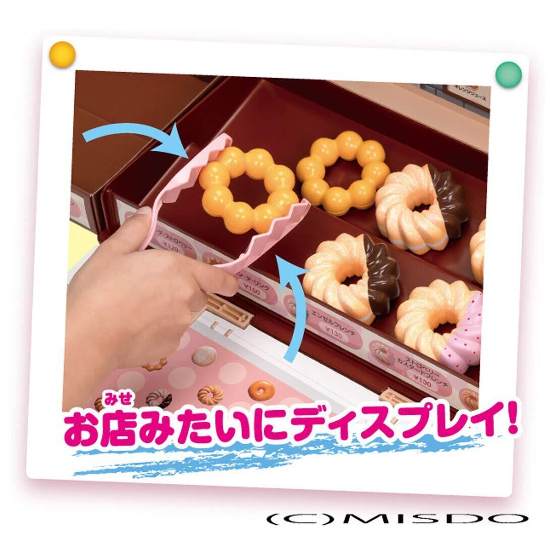 みんなが大好きなミスタードーナツ屋さんごっこができるおままごと商品です。 ドーナツサーバーでドーナツをお皿やトレイに取りましょう! かみぶくろやBOXに入れておもちかえりもできちゃいます! 本物みたいな柔らかいドーナツが22個もついています。 本体は閉じるとお片付けもできるおもちかえりBOXになります。