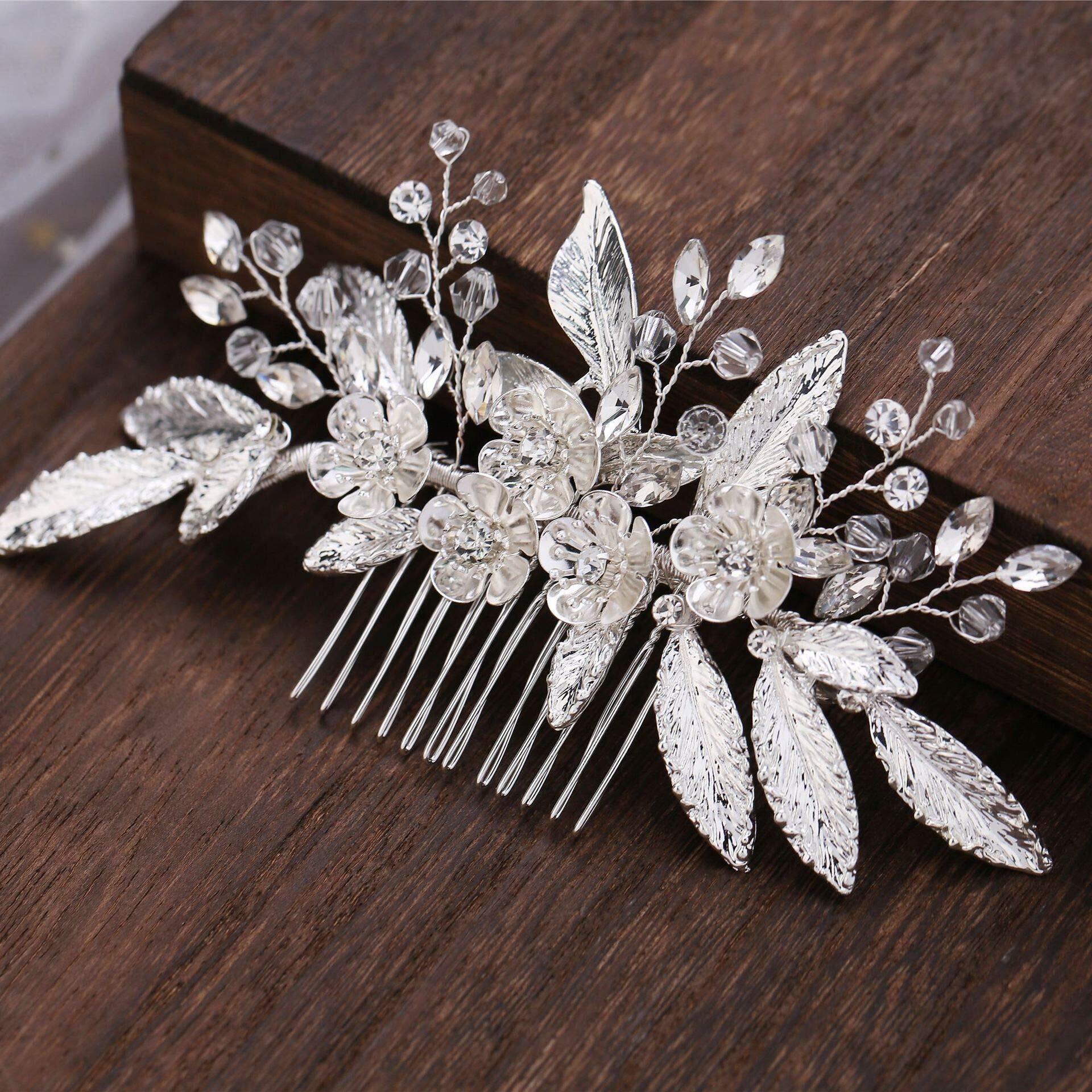 ARINKURIN 花嫁 髪飾り ヘッドドレス シルバー リーフ 花 ウェディング ヘアアクセサリー 卒業式 前撮り 結婚式 ブライダル ダンス パーティー 浴衣 着物 袴 振袖 和装 まとめ髪 写真 撮影 保証書付き サマー ウェディング 衣装 | BASE SHOP
