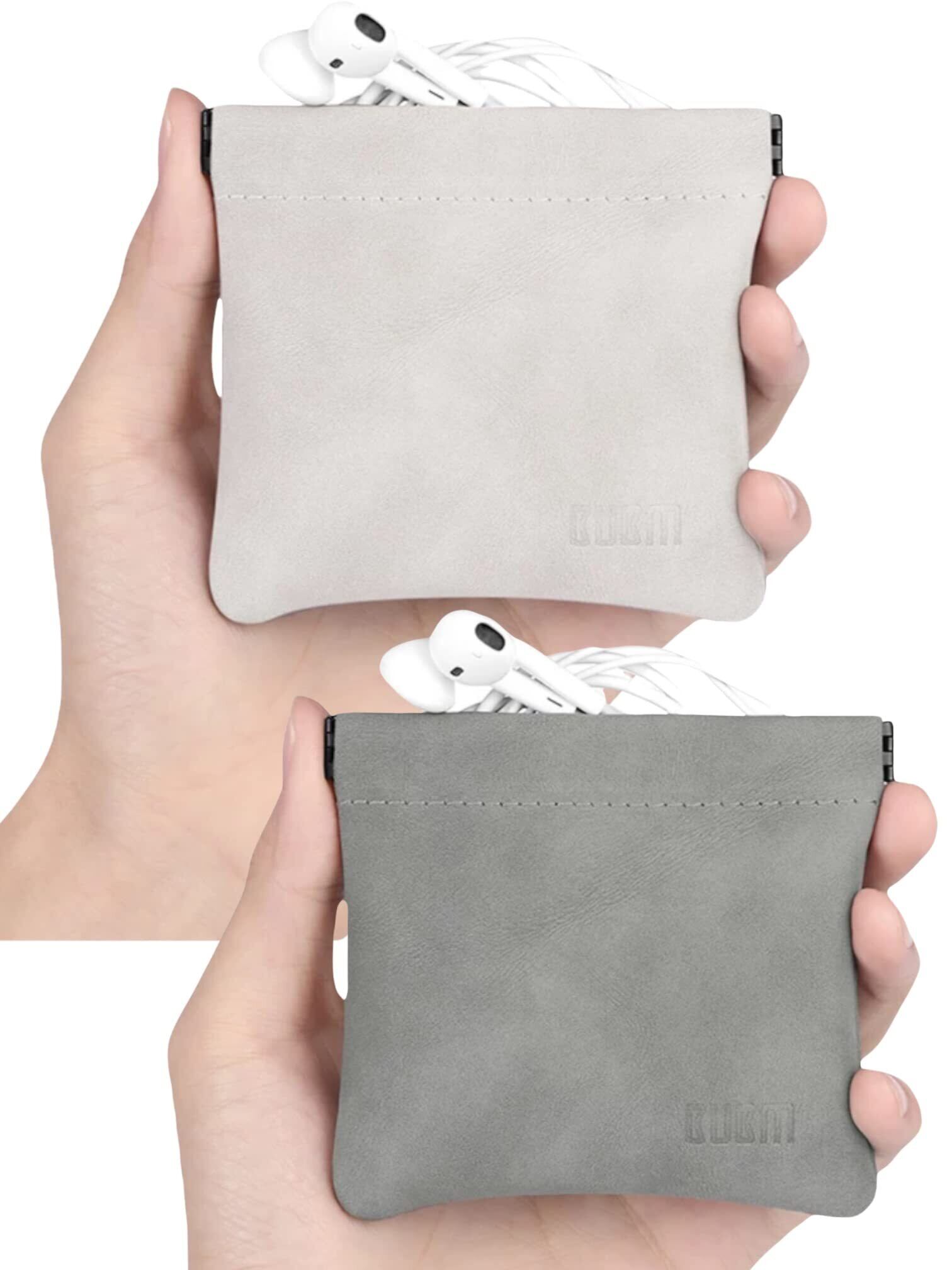 花禅 BUBM アクセサリーポーチ ジュエリーケース 携帯用 ミニ ヌバックソフトレザー 撥水加工 ステンレス金具 內部ベルベット 10cm開口 ース (グレージュ&オリーブグレイ) | BASE SHOP
