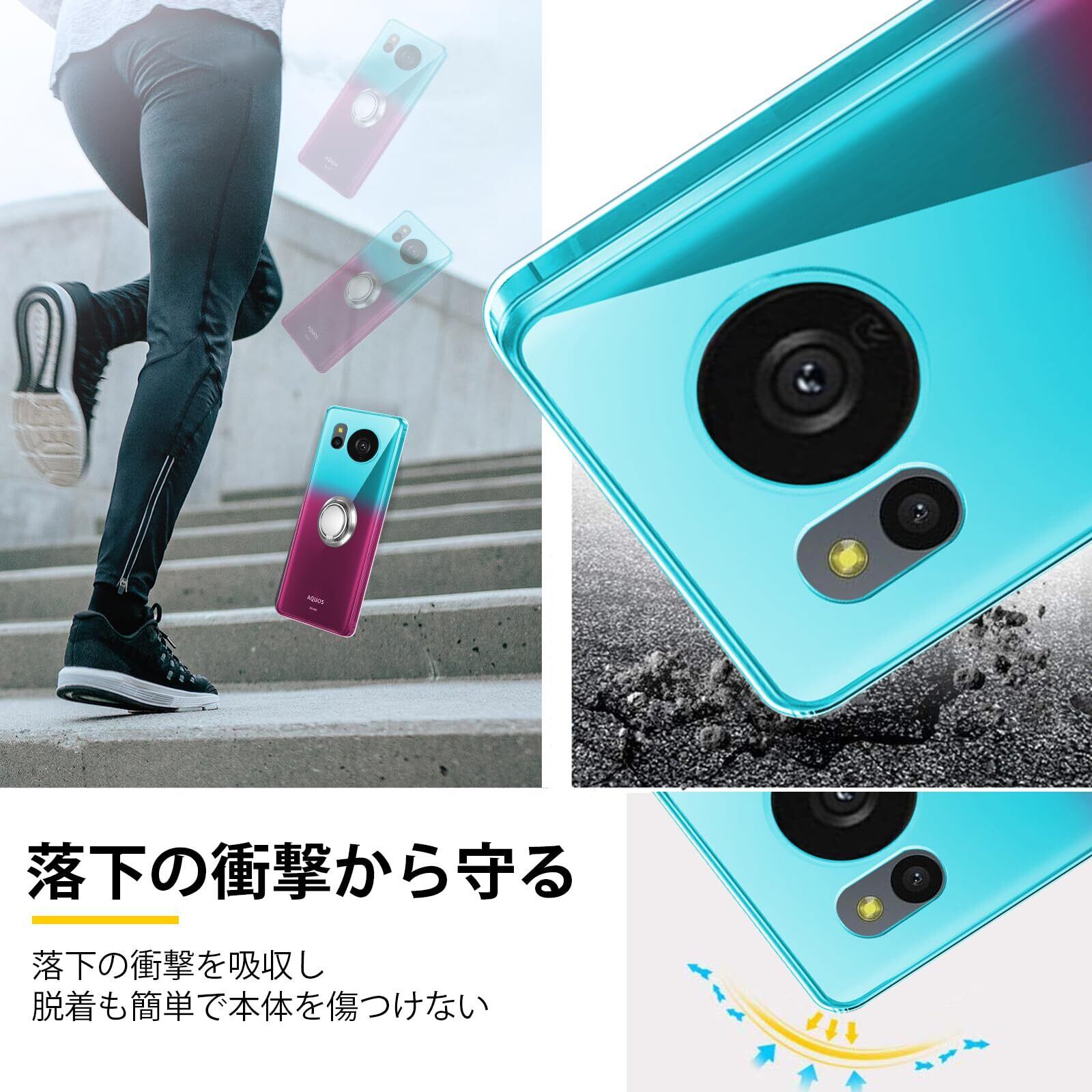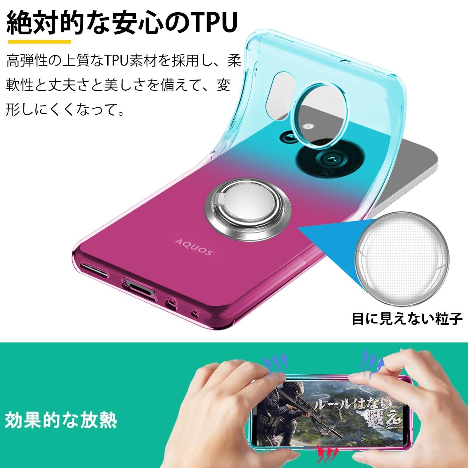 AQUOS sense 8 ケースリング TPU 薄型 軽量 シリコン グラデーション色 ケース スマホケース SH-54D 専用 耐衝撃 ストラップホール付き 指紋防止 車載ホルダー対応 防塵 一体型 人気 携帯カバー 全面保護カバー 绿の粉