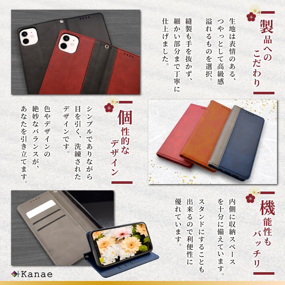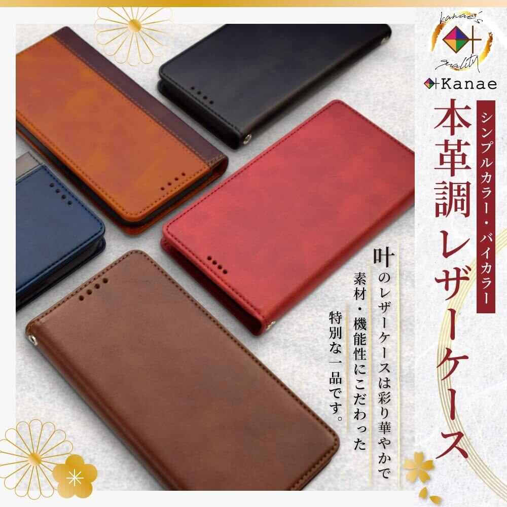 叶kanae カナエ Google Pixel 9a ケース カバー 手帳型 本革調 レザーケース 1個入り ネイビー×グレー