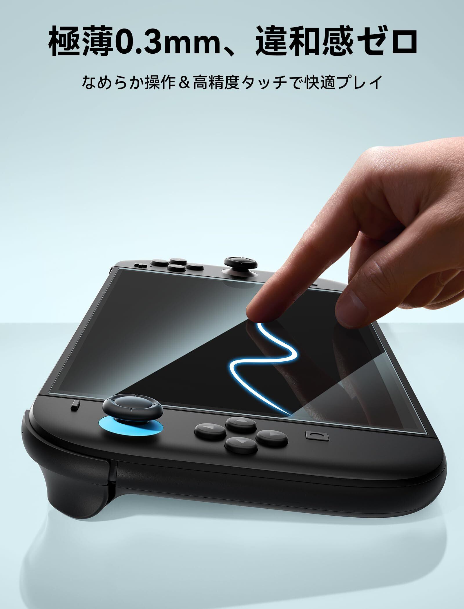 【指紋・汚れを防止】指紋が付きにくい表面処理により、指紋や皮脂の付着を軽減。 家族や友達とのシェアプレイ時でも画面はクリアなまま。