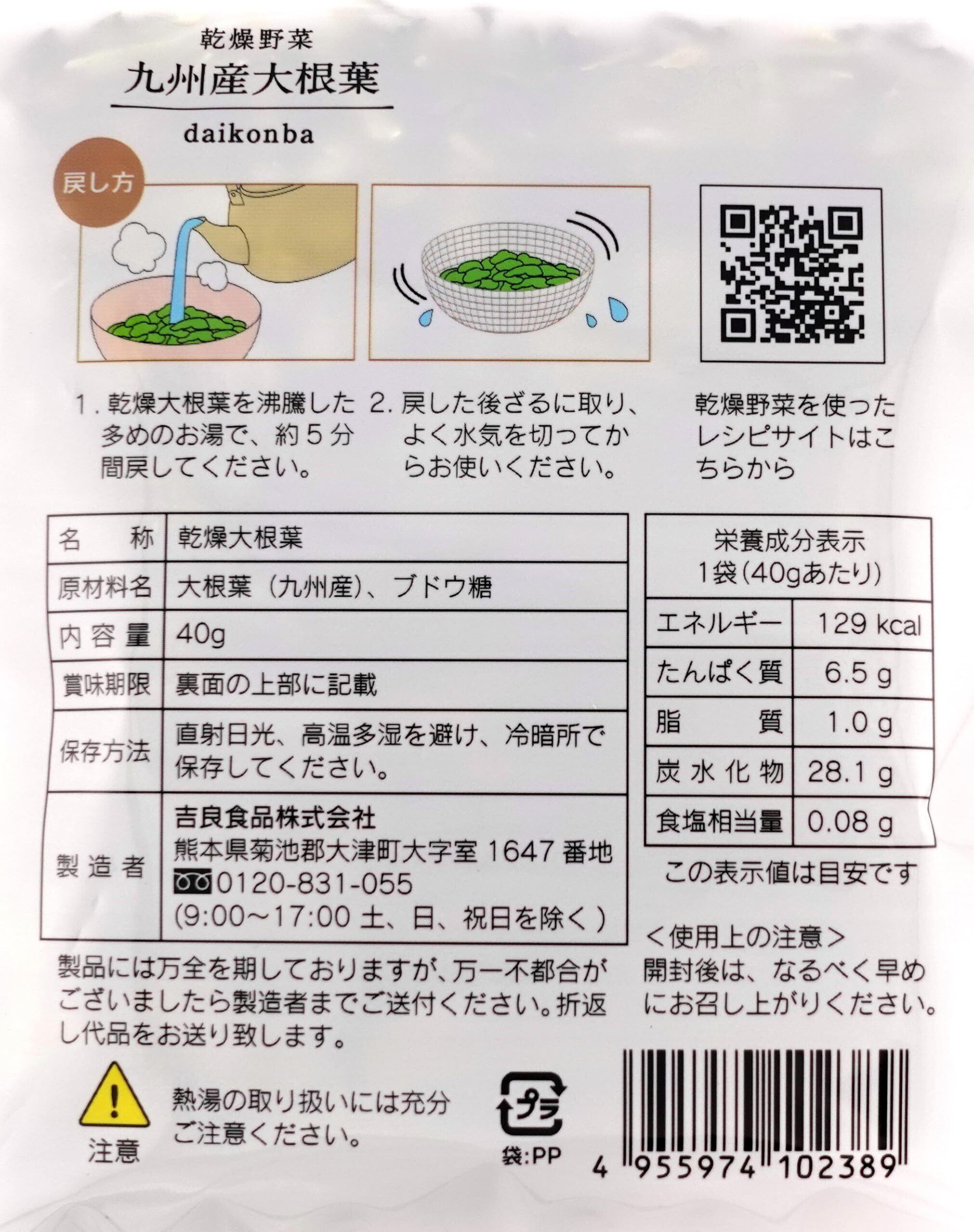 原材料:大根葉(九州産)、ブドウ糖