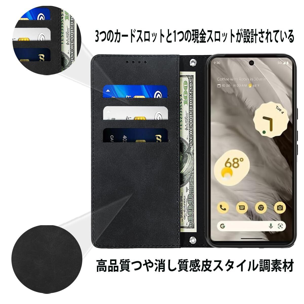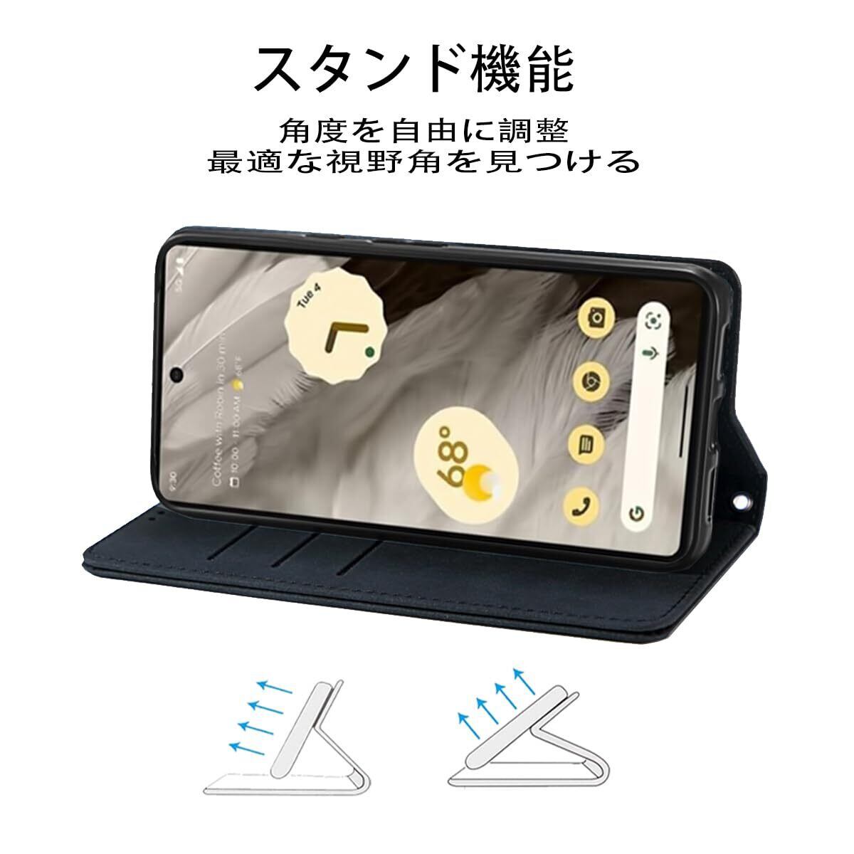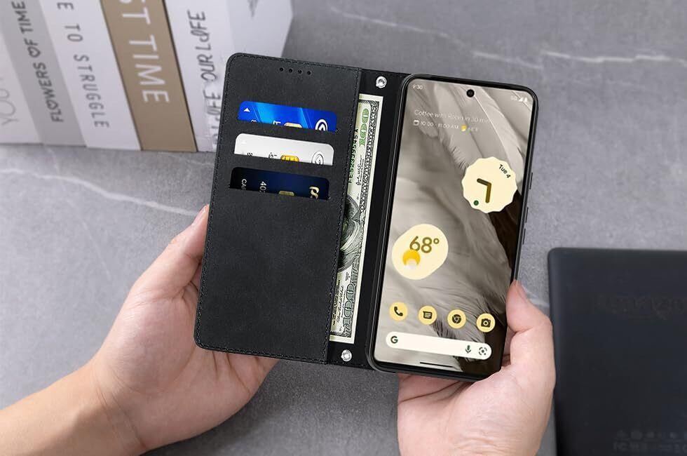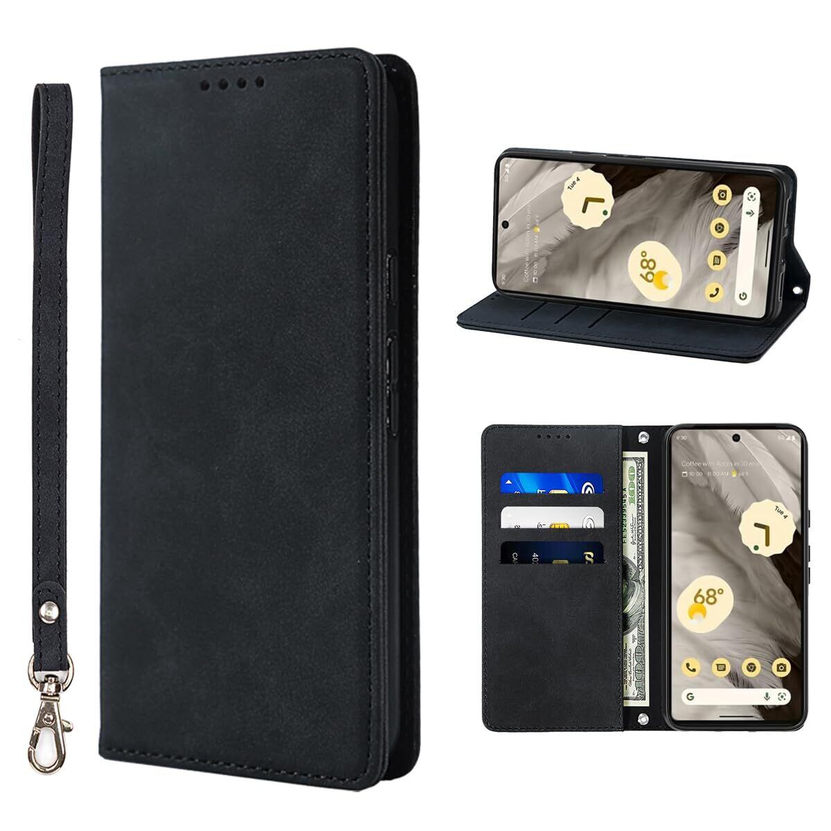 NanHou Google Pixel 7A 5G ケース 手帳型 つや消し レザー スタイル質感 カバー 手帳型 耐衝撃 保護カバー 内蔵マグネット 財布型 携帯カバー カードポケット スタンド機能 リストバンド Google 7A - ブラック | BASE SHOP