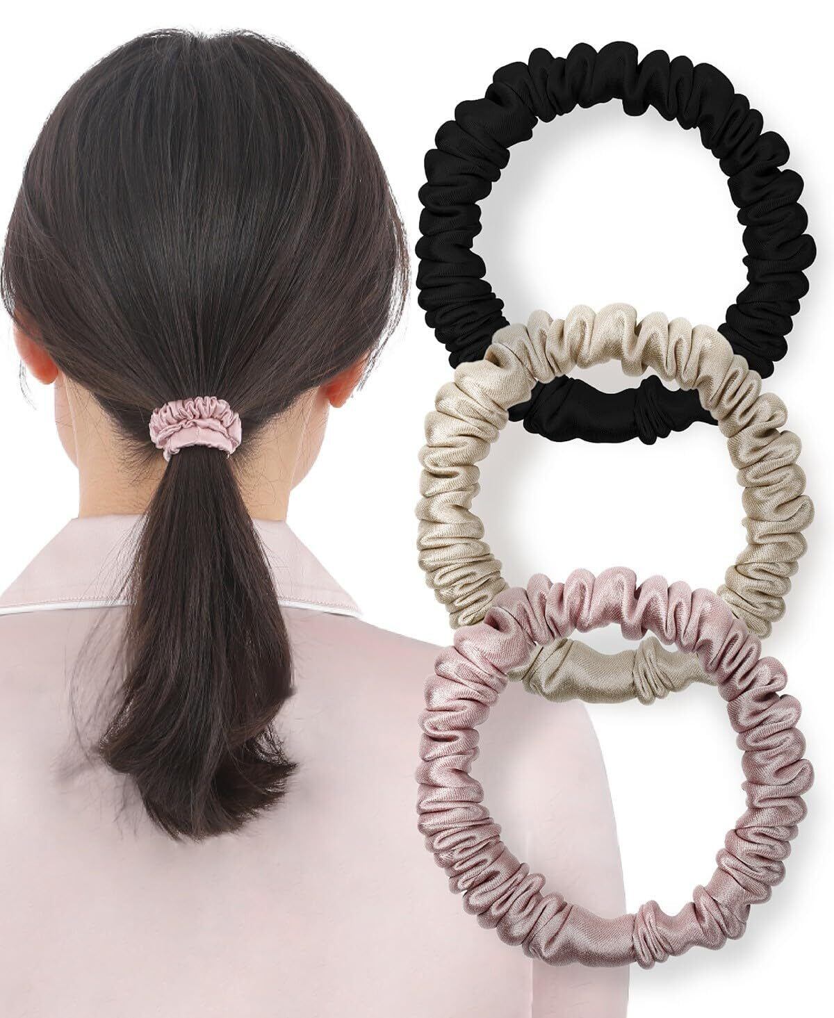 【ヘアケアのプロ監修】 シルク ヘアゴム シュシュ 髪ゴム シルクゴム 跡がつかない SILK100% おしゃれ 太め 3個セット (アソートB)