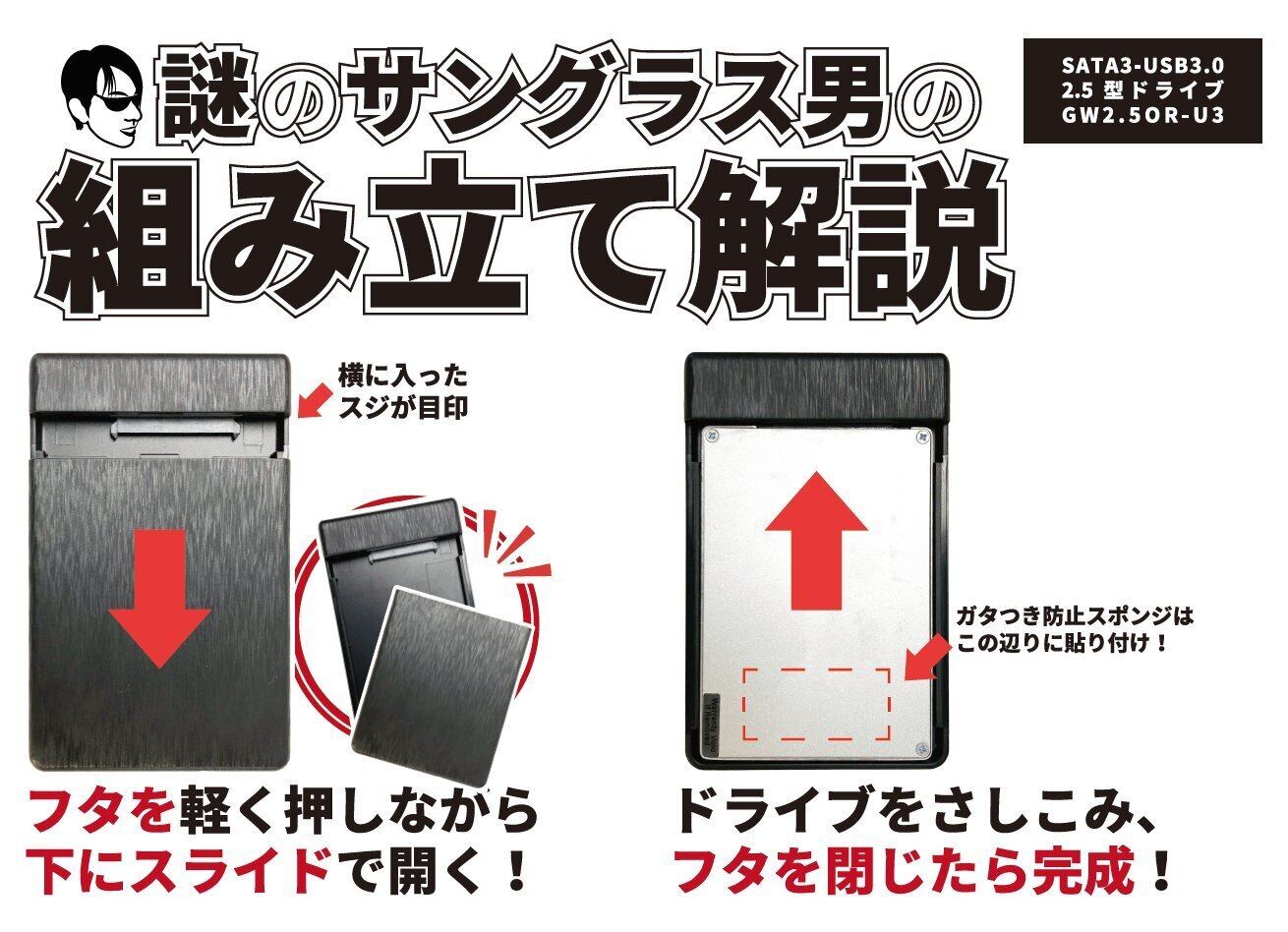 玄人志向 2.5型 HDD ケース / SSD ケース USB3.0接続 SATA 3.0 ハードディスクケース UASP対応 GW2.5OR-U3