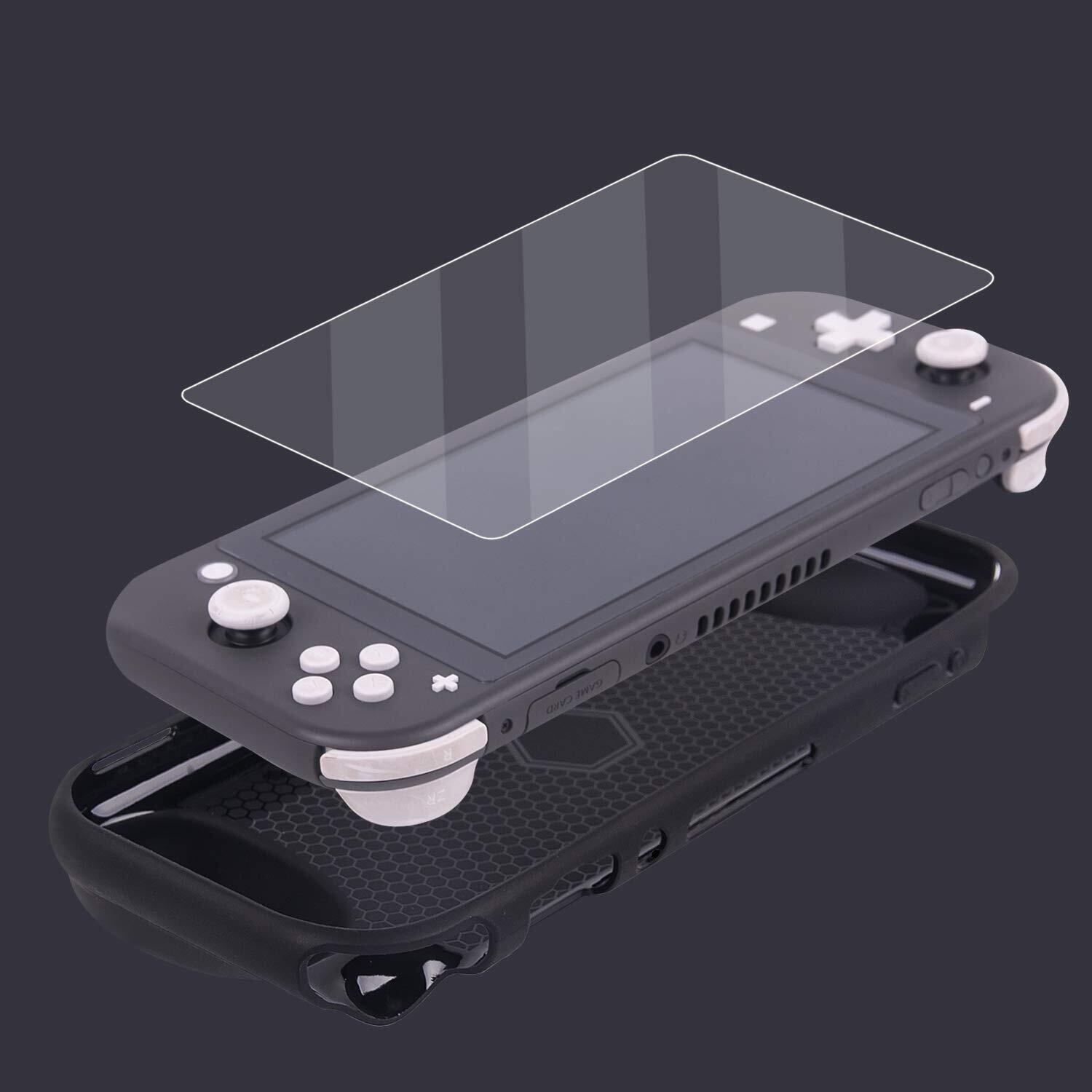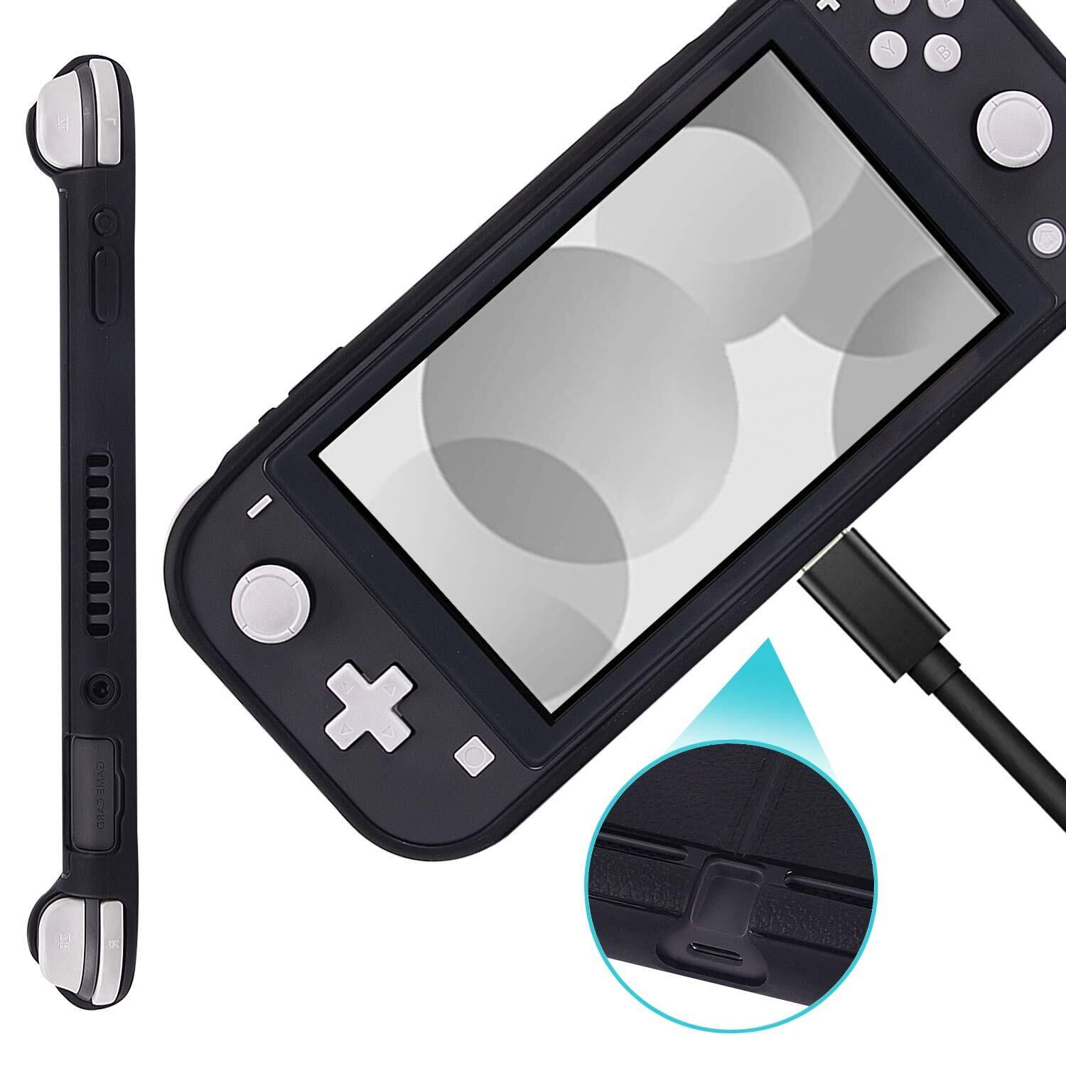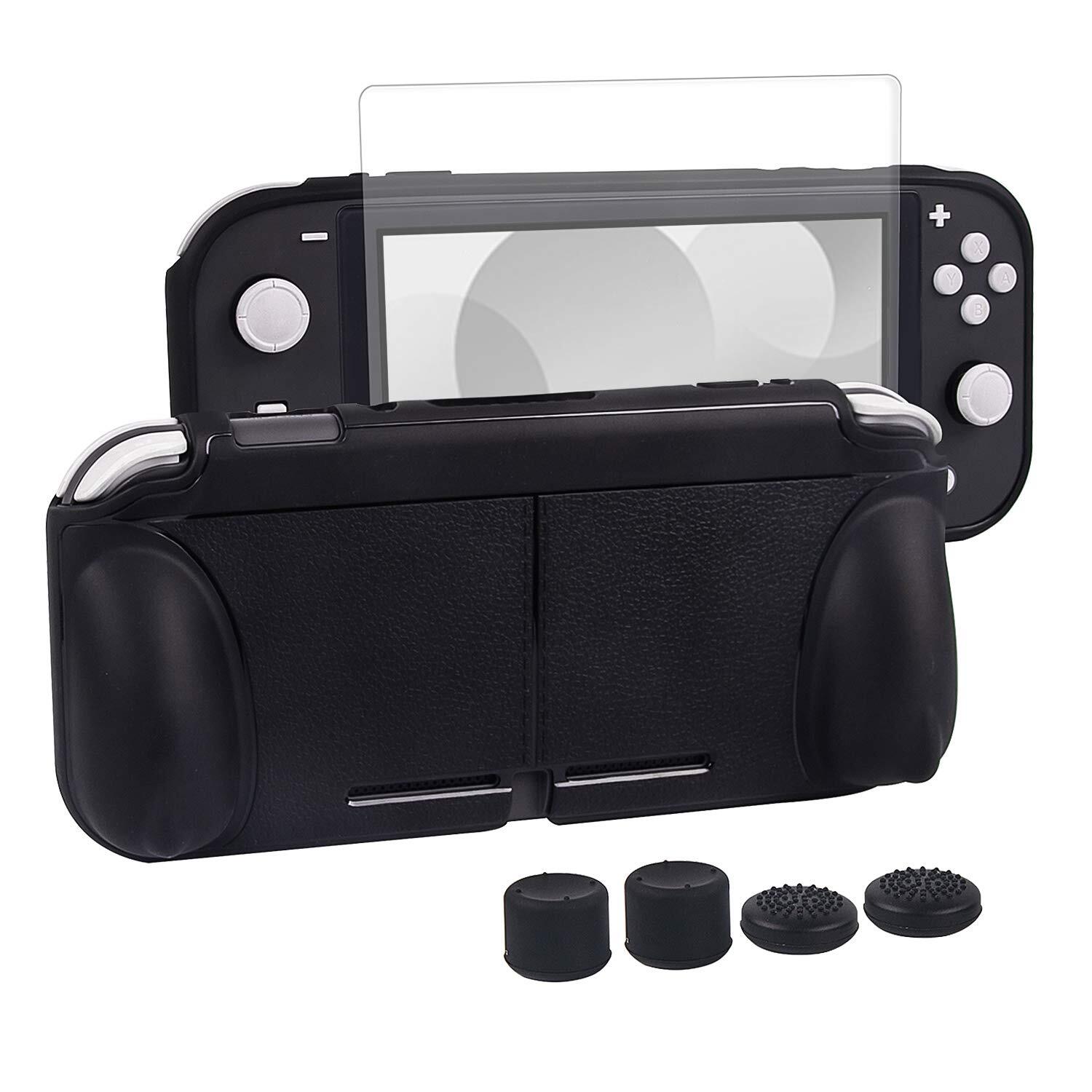 switch liteカバー スイッチライト ケース TPU素材 一体式 全面保護 耐衝撃 特殊ハンドル 薄型軽量 着脱簡単 防水防塵 頑丈 スタンド機能 スティックカバー4つ 液晶保護フィルム1枚付き 6点セット(ブラック)