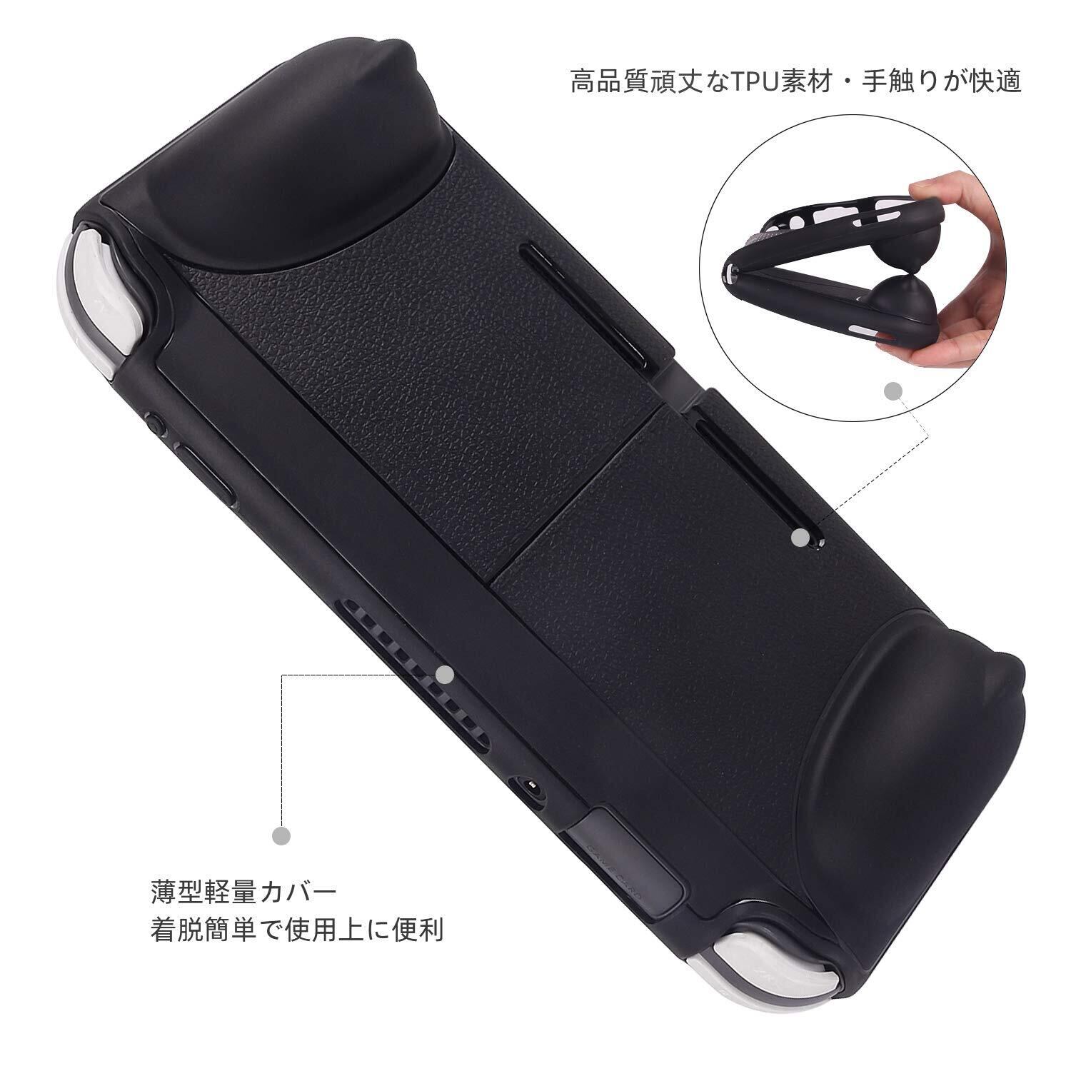 switch liteカバー スイッチライト ケース TPU素材 一体式 全面保護 耐衝撃 特殊ハンドル 薄型軽量 着脱簡単 防水防塵 頑丈 スタンド機能 スティックカバー4つ 液晶保護フィルム1枚付き 6点セット(ブラック) | BASE SHOP