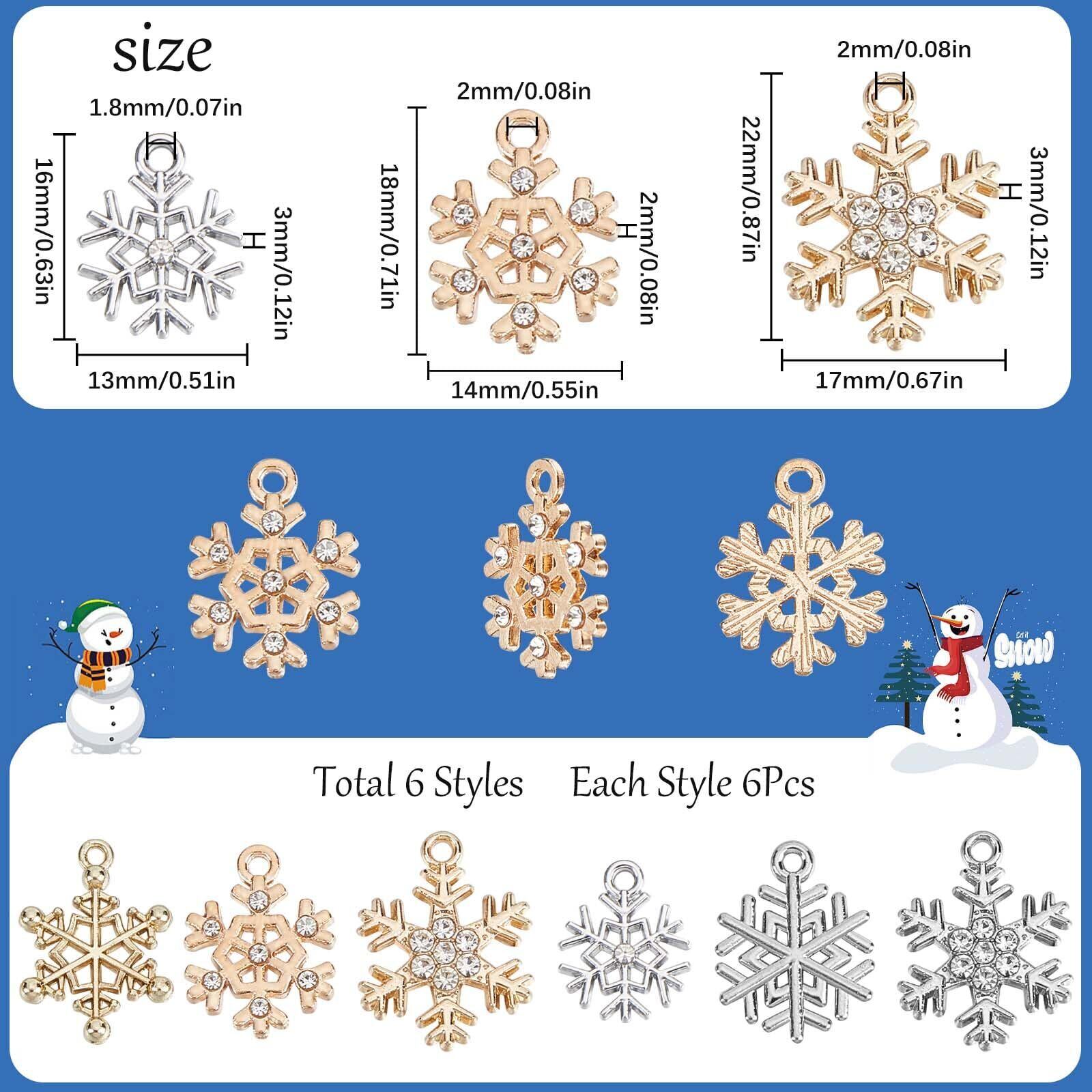 6 スタイルのウィンターチャーム: 6 スタイルのスノーチャーム, 2色展開, 日常生活に便利です. ラインストーンが付いたスノーフレークチャームが4種類あります。 あなたのジュエリーをより人目を引き、輝かせます。