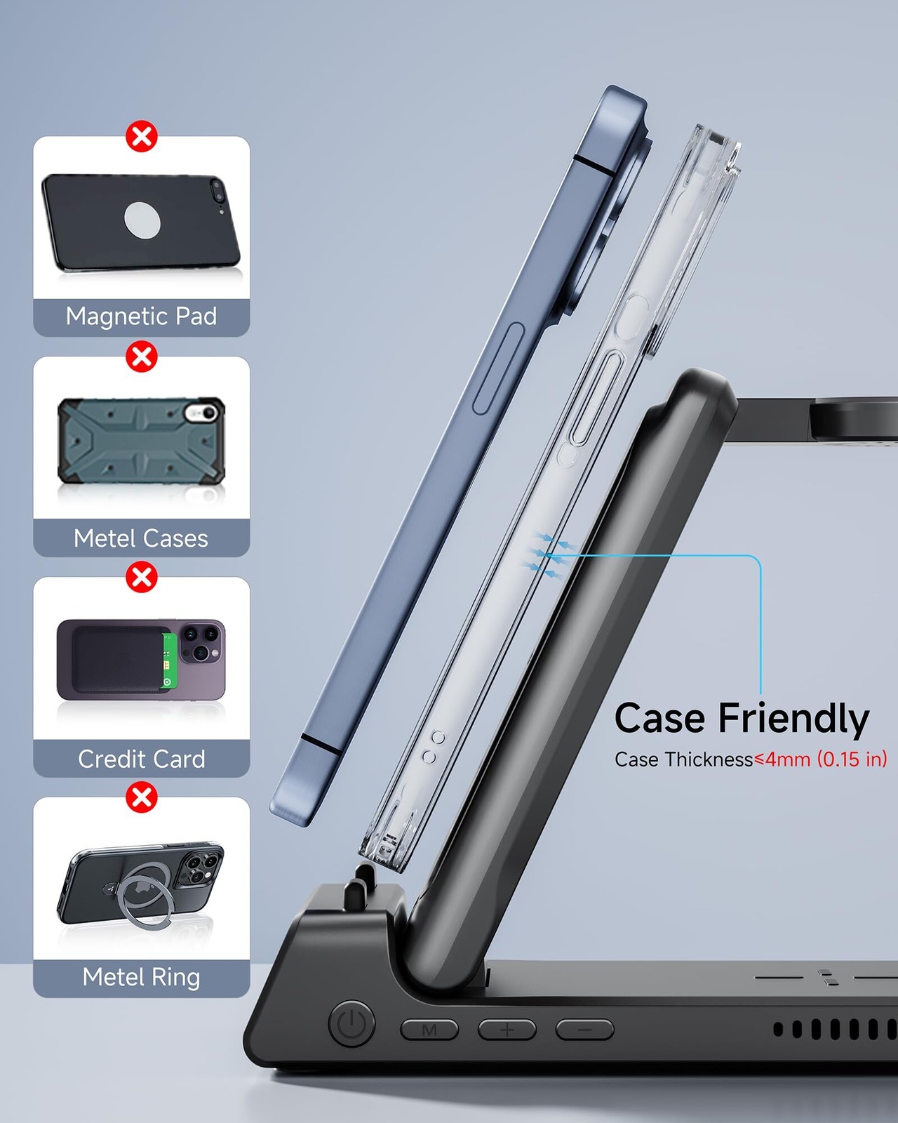 【折り畳み式&角度調整可能】SwanScout 3in1 ワイヤレス充電器はコンパクトな折り畳み式デザインで、軽量&薄型。スマホを縦・横どちらでも設置でき、角度調整も自在。5mm以下のケースなら装着したまま充電OK。