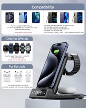 iPhone 16/15対応ワイヤレス充電器、SwanScout 703A、iPhone 16/15/14/13/12/11/X/8/SE シリーズ適用、Apple Watch全機種対応 、折り畳み式 、3in1 充電ステーション (アダプター別売り)