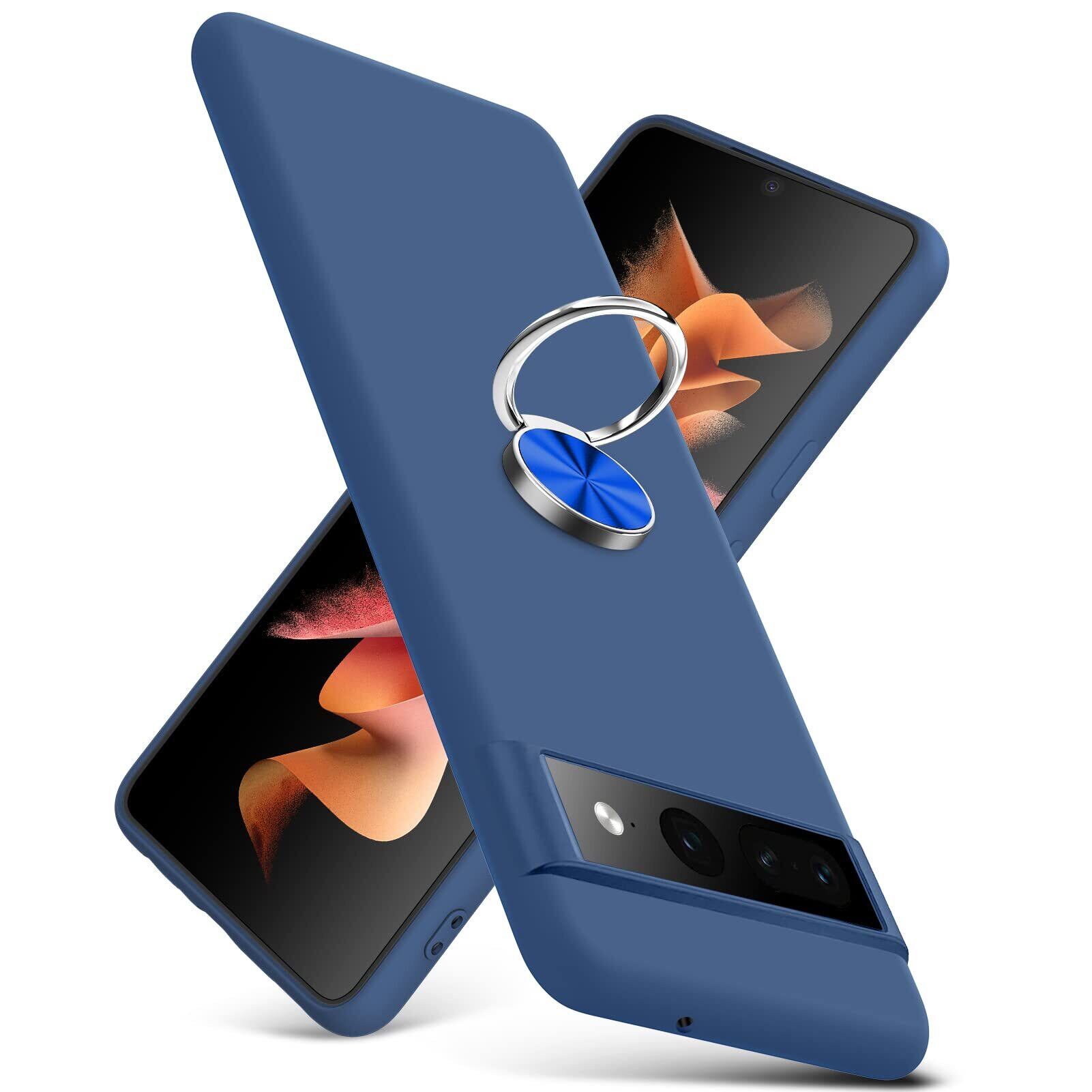 Google Pixel7 Pro ケース リング 耐衝撃 シリコン Pixel7 Pro カバー TPU 薄型 リング付き かわいい ストラップホール付き 指紋防止 レンズ保護 磨り表面 擦り傷防止 滑り止め 軽量 黄変防止 脱着簡単 青C91-pixel 7p-03