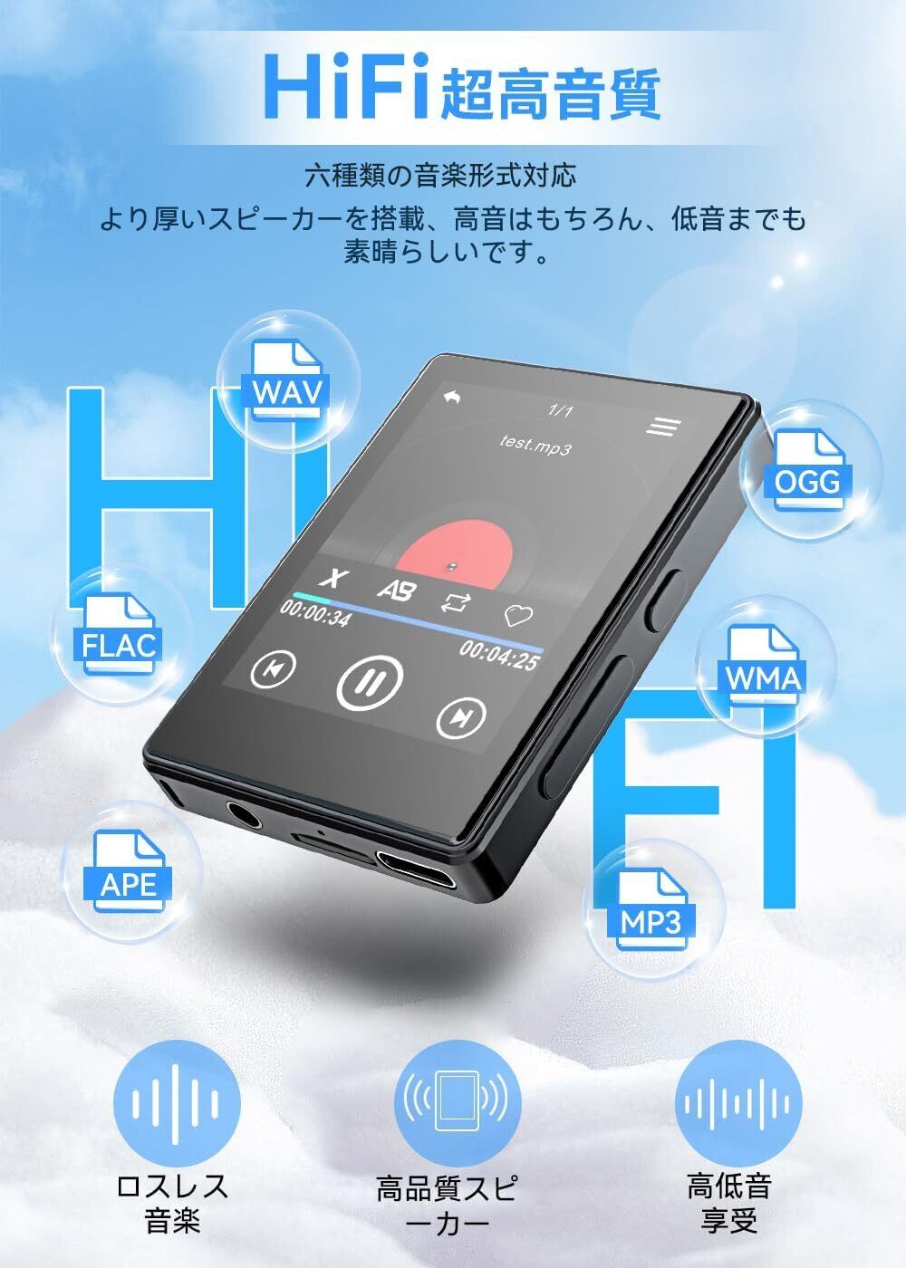【最新Bluetooth5.3技術&ワイヤレスと有線両用】本MP3プレーヤーは、業界をリードするBluetooth 5.3技術を採用し、より高速な伝送、より安定な接続、より強力な抗干渉能力と優れた互換性を提供しています。Bluetooth機能を利用して、BTイヤホンやBTヘッドセットやBTスピーカーと接続はもちろん、3.5mmイヤホンジャックも付いて、有線イヤホンも接続できます。(ご注意:スマホ・自動車・パソコンのBluetoothとペアリングできません。)