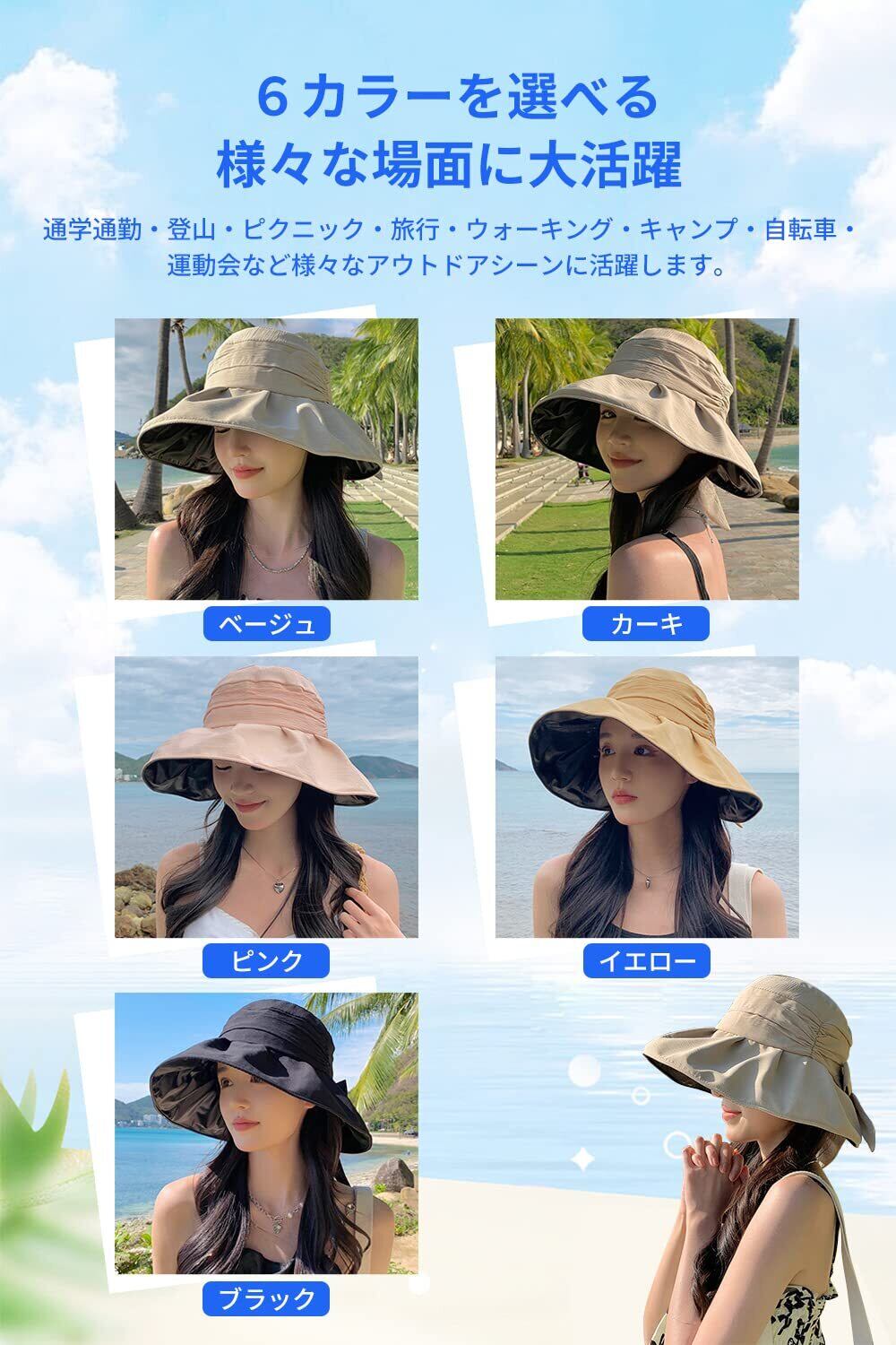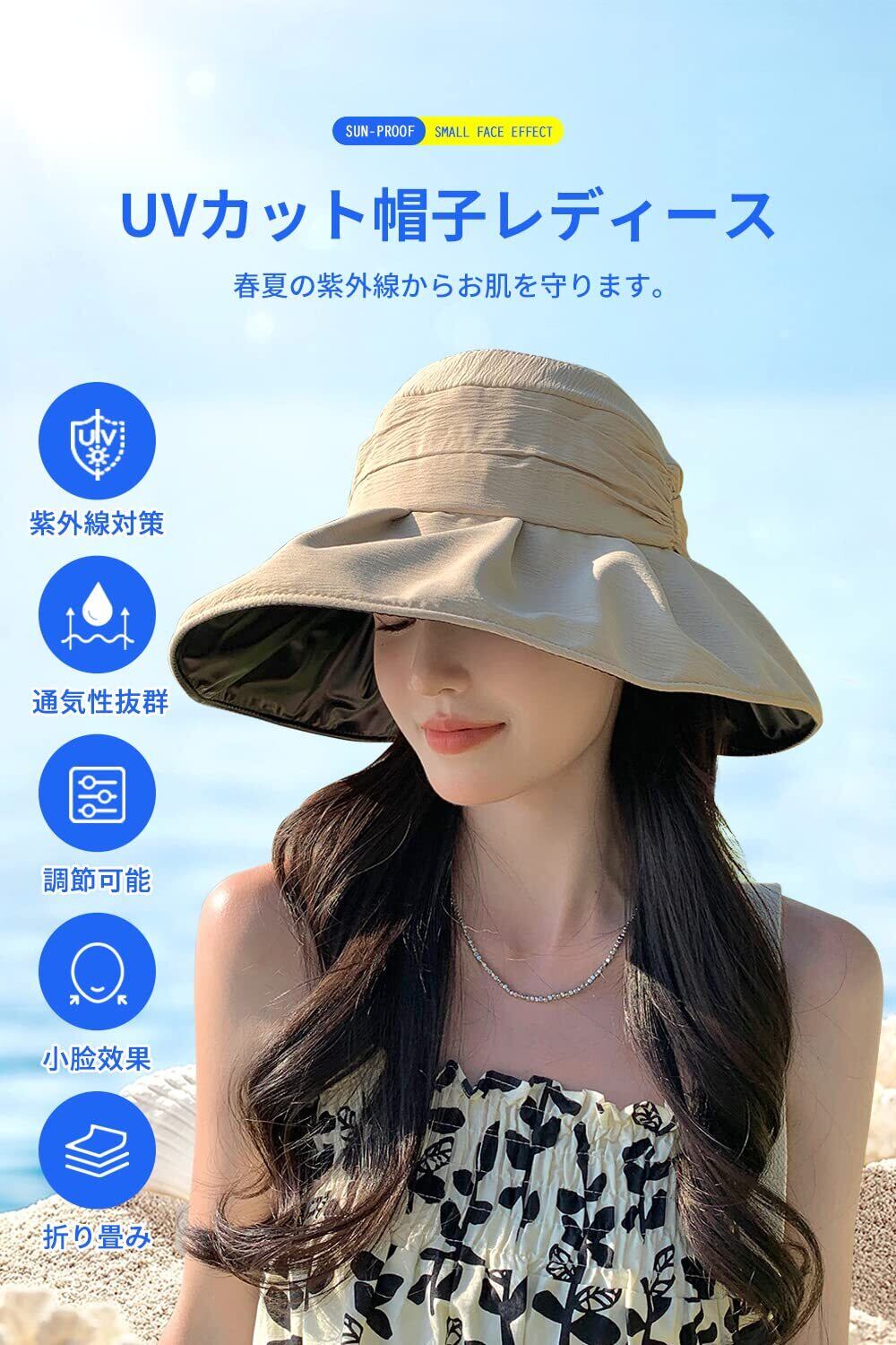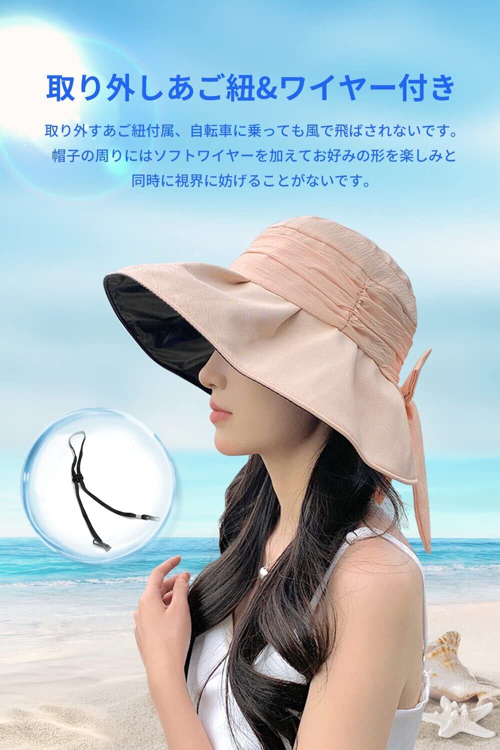 [Gokamoi] UVカット 帽子 レディース ハット レディース 日焼け防止【つば広・小顔効果・折りたたみ・サイズ調節】 遮光 遮熱 通気 紫外線対策 日除け帽子 ワイヤー入り あご紐 散歩 旅行 通勤 大きいサイズ 春夏 | BASE SHOP