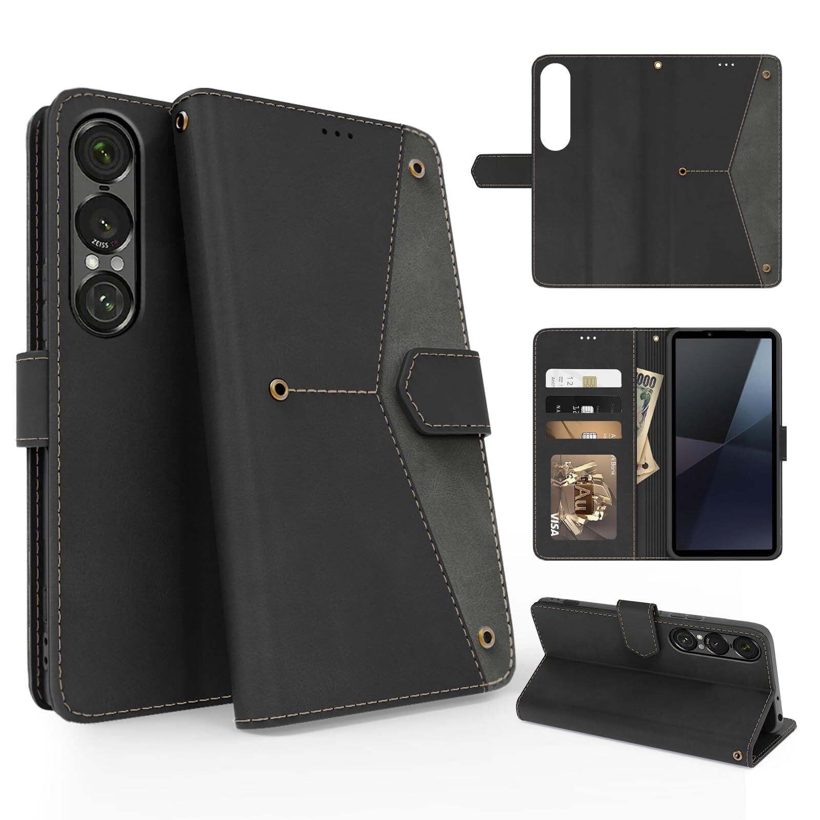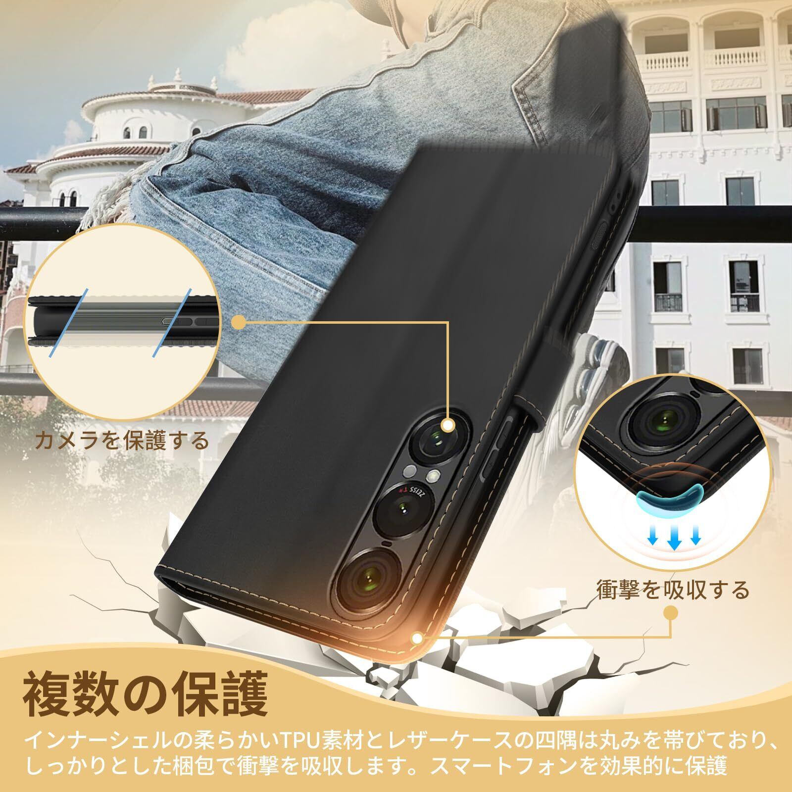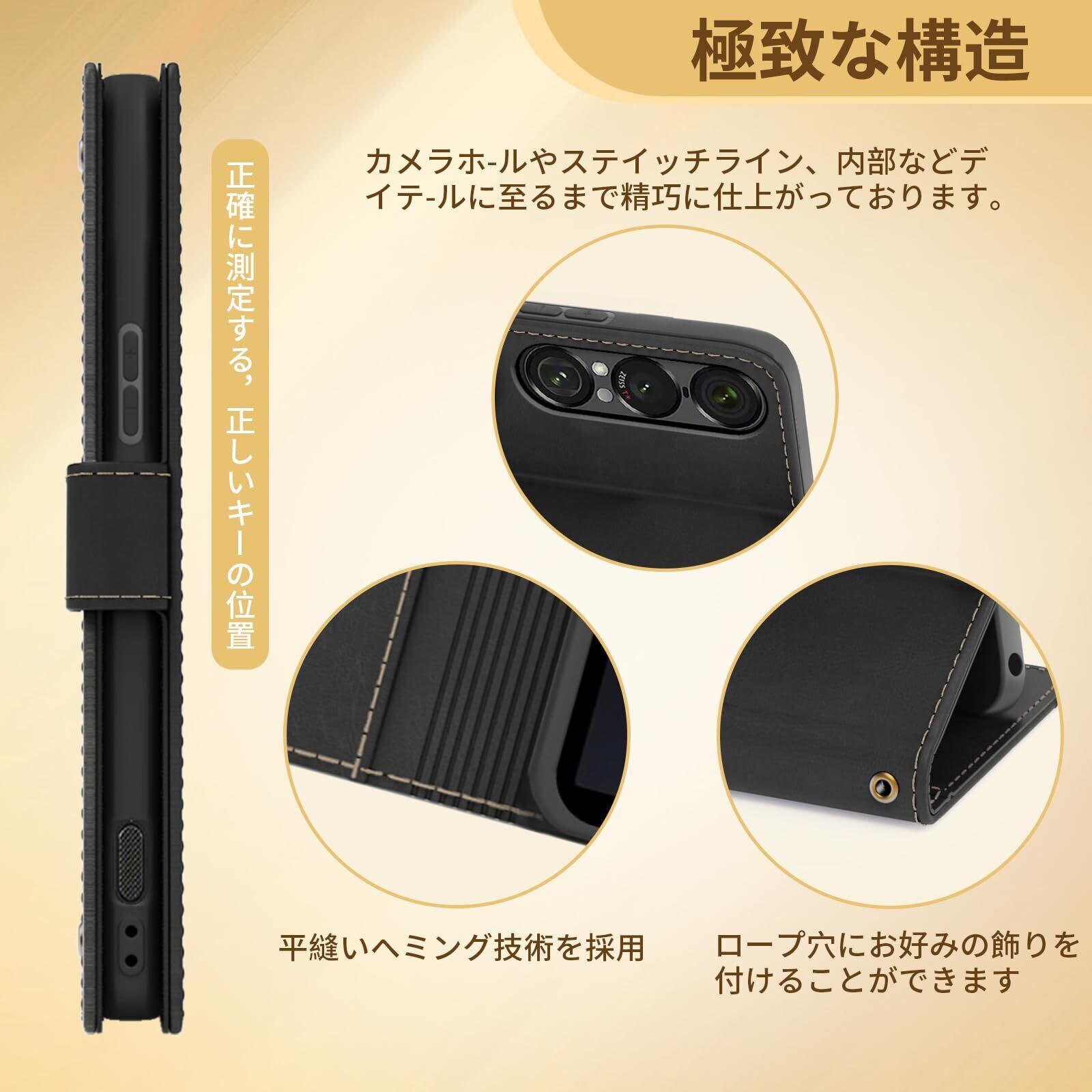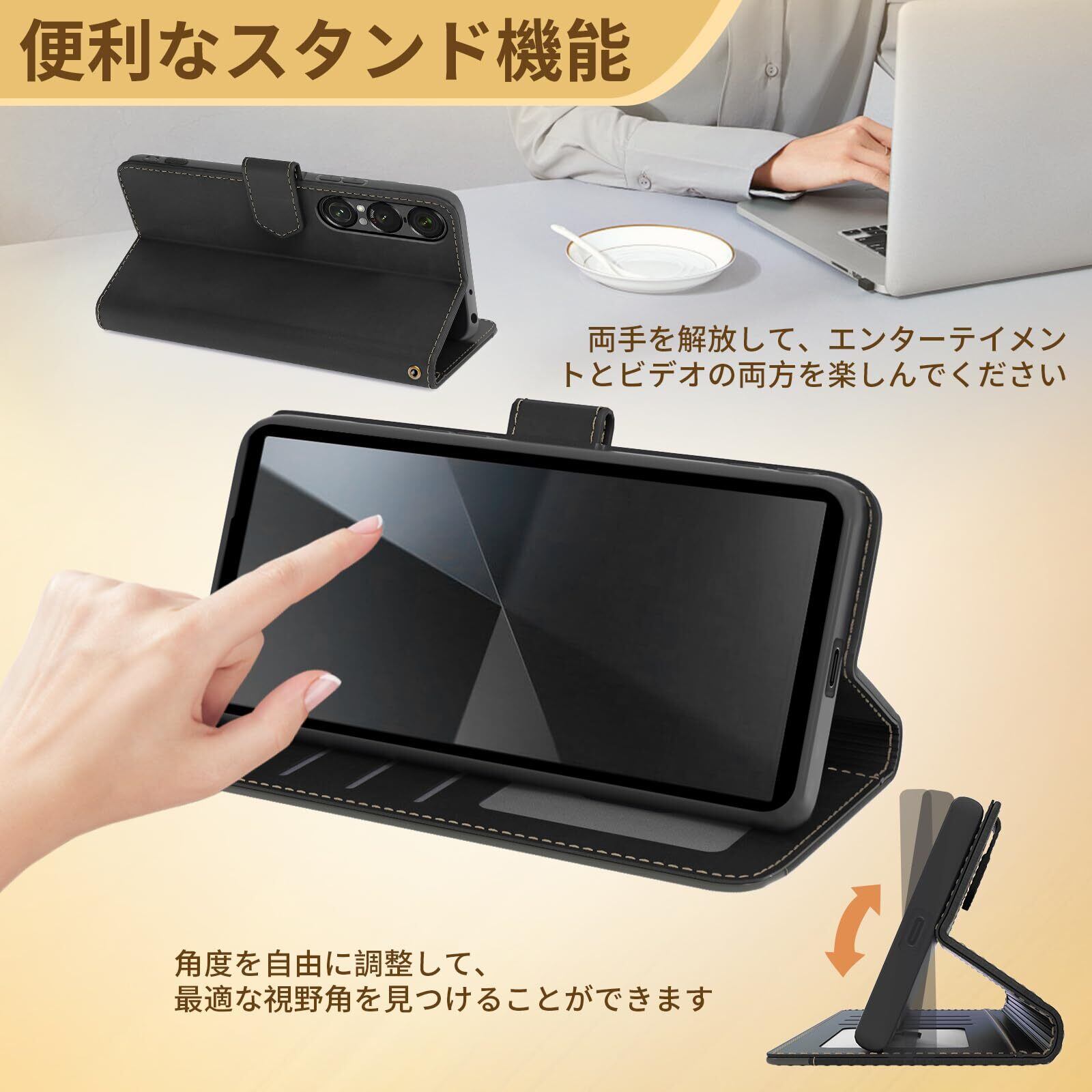 Xperia 1 VII ケース 手帳型 財布型 全面保護 耐衝撃 エクスペリア 1 VII スマホケース カード収納 肌感レザー ラップホール付き 横置き機能付き マグネット内蔵 SO-51F SOG15 XQ-FS44 携帯カバー 指紋防止 耐摩擦 ファッション ベルトマグネット,ブラック