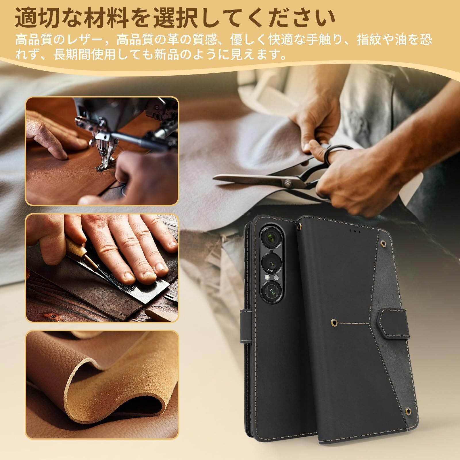【プレミアム素材で長持ちする高品質】PUレザーと柔軟なTPUシェルの組み合わせにより、PUレザーは長期間使っても劣化せず、美しい光沢を維持します。手触りも非常に良く、肌に優しい感触です。上質な肌触りと高級感を提供します。汚れにくく、手汗をかいても臭いが発生しにくい特徴があります。TPU素材は軽量でありながら耐衝撃性にも優れ、スマートフォンを落下や衝撃からしっかり守ります。長時間使用しても変形や劣化を防ぎます。ケースは簡単に取り外し可能で、スマートフォンに傷をつけることなく装着できます。