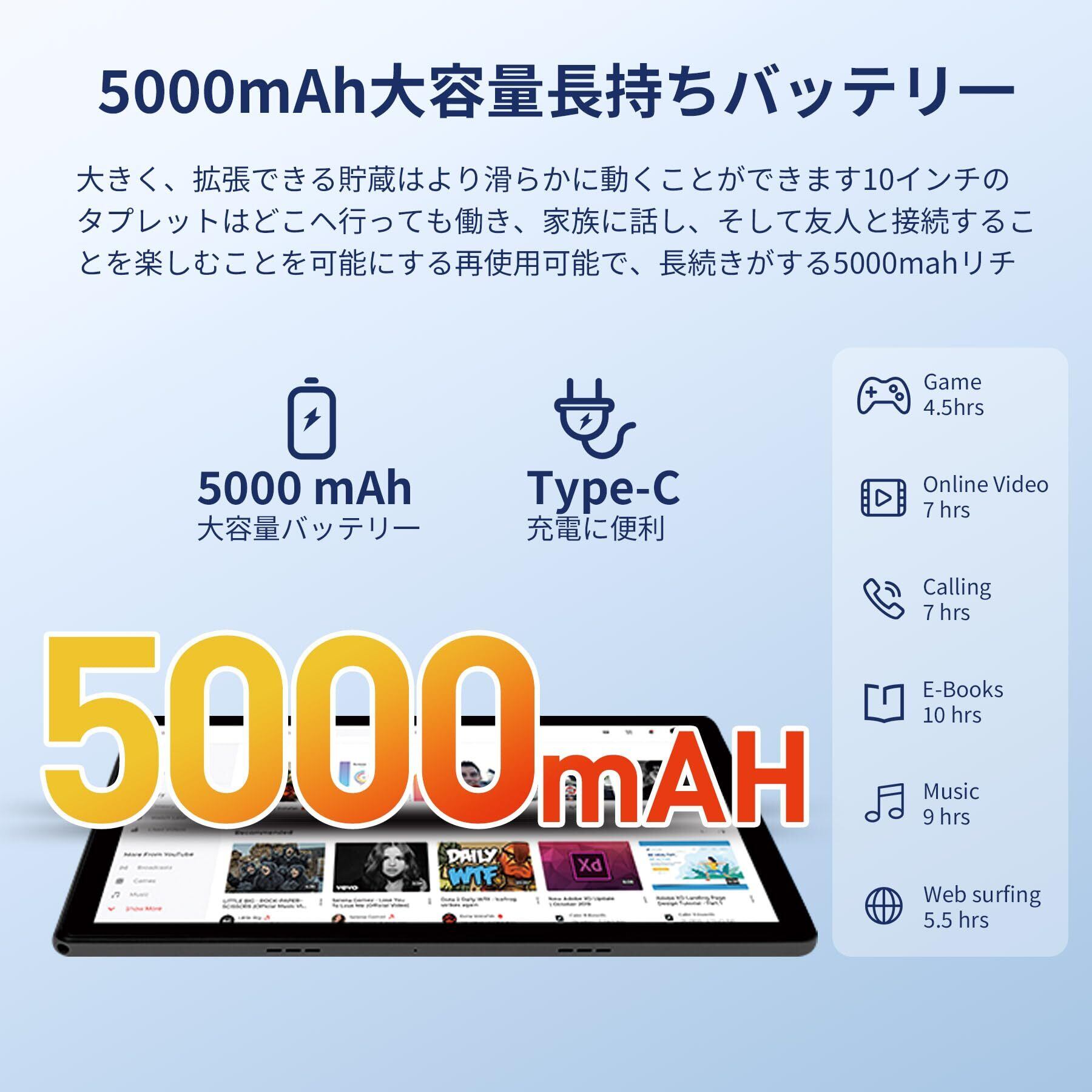 【Wi-Fi 6対応モデル・Bluetooth 5.3・無線投影機能・5000mAh大容量バッテリー】、このタブレットは、最新のWi-Fi 6技術とBluetooth 5.3を搭載し、高速かつ安定したネットワーク接続とスムーズなBluetooth通信を実現します。さらに、無線投影機能を備えており、ケーブル不要でテレビやモニターに簡単に画面をミラーリング可能。会議や動画鑑賞がより便利になります。また、5000mAhの大容量バッテリーとインテリジェントバッテリー保護機能を搭載しており、節電とバッテリー寿命の延長を両立。映画鑑賞や音楽再生、作業中も安心して長時間使用できます。日常使いに加え、エンターテインメントやビジネスにも最適な多機能タブレットです!