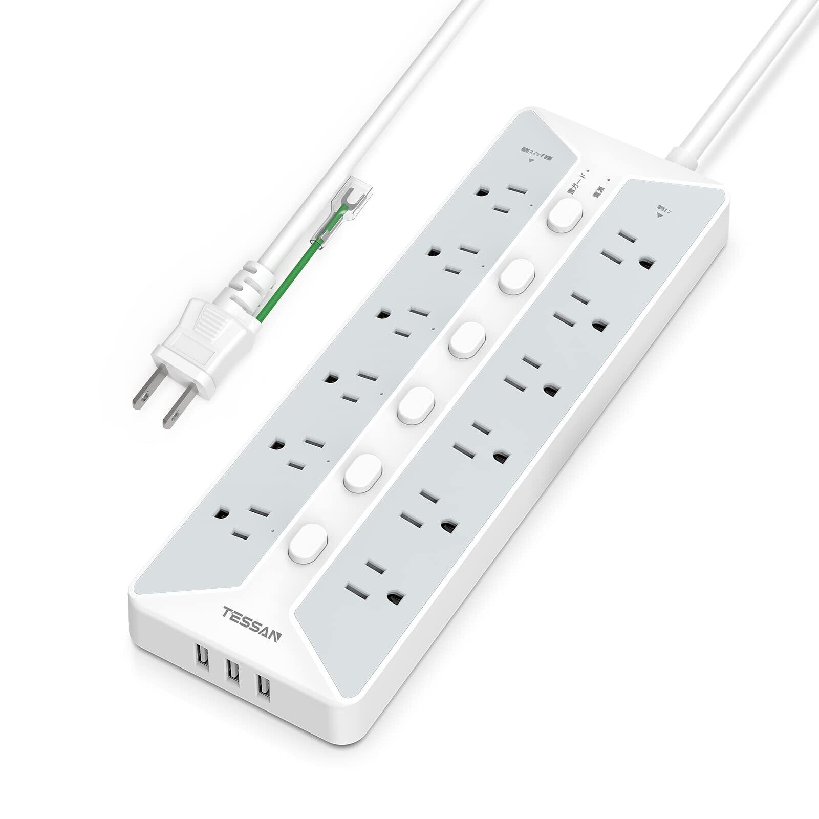 電源タップ スイッチ付き 延長コード 2m usb コンセント TESSAN 12個AC口 3個USBポート テーブルタップ 壁掛け マルチ oa 幅広コンセント 蛸足コンセント タコ足配線 節電 3ピン 省エネ 雷ガード 2ピン 3ピンプラグ対応 | BASE SHOP