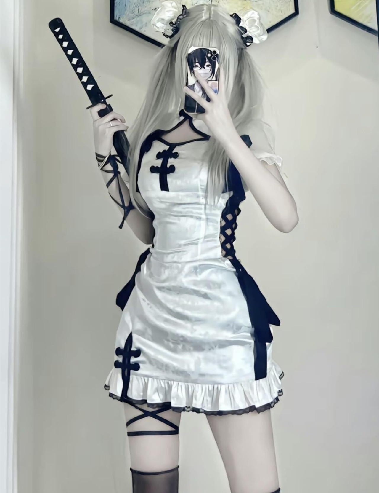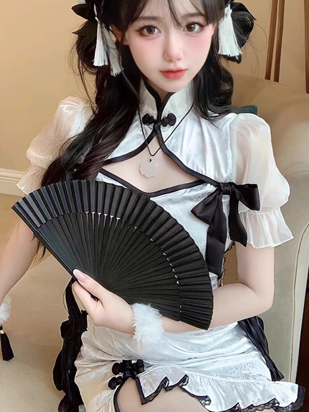 [Kanesuki] [2点セット]チャイナ服 コスプレ チャイナドレス セクシー メイド服 コスプレ レディース 中華風 ロリータ服 ワンピース コスチューム ドレス 萌え 可愛い かわいい チャイナ 服 コスプレ 仮装 胸空きミニスカート 衣装 ハロウィン cosplay 学園祭 文化祭