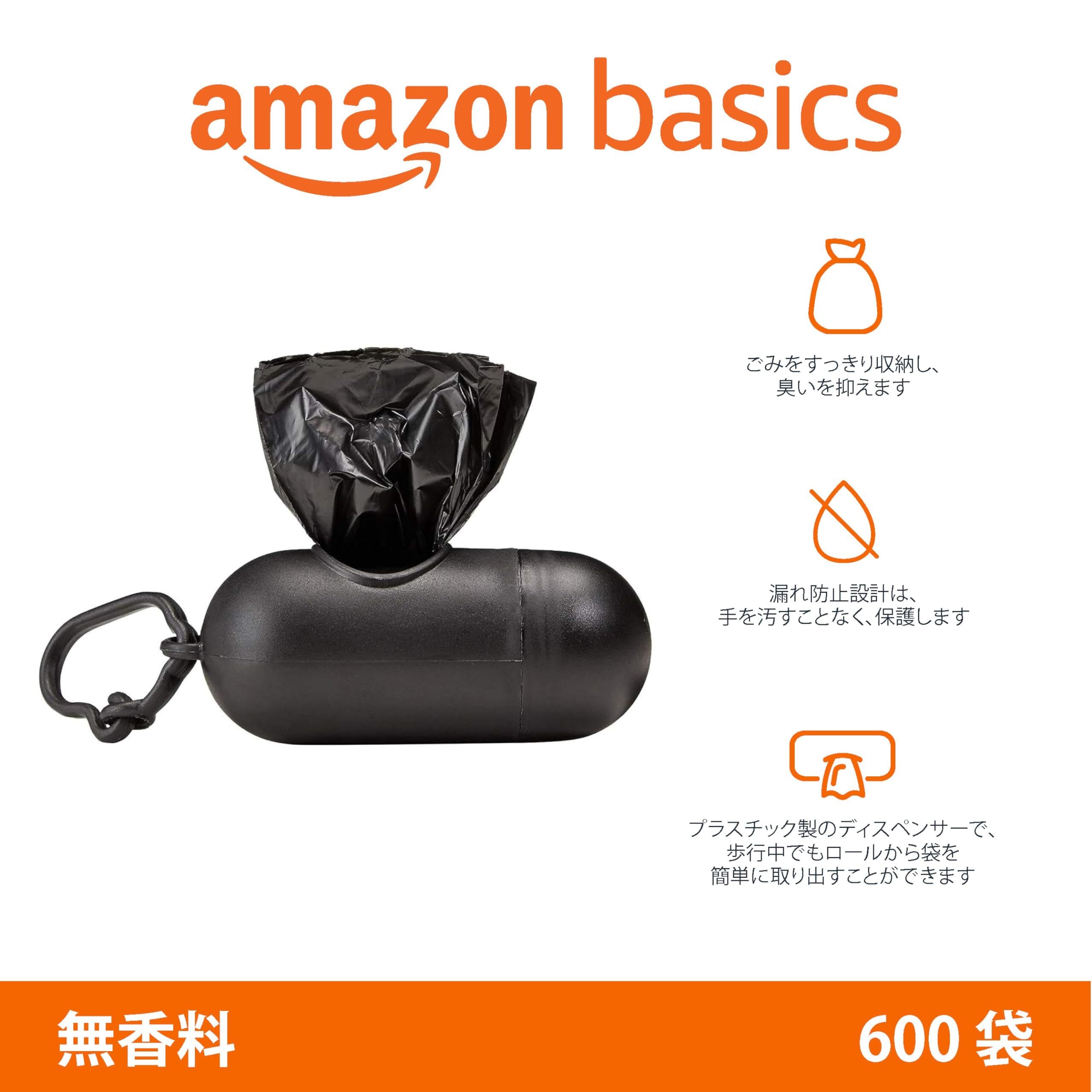Amazonベーシック ペット用ウンチ処理袋 トイレ袋 取り出し容器とクリップ付き 無香料 33×23cm 600袋入り (1ロール 15枚、合計40ロール)