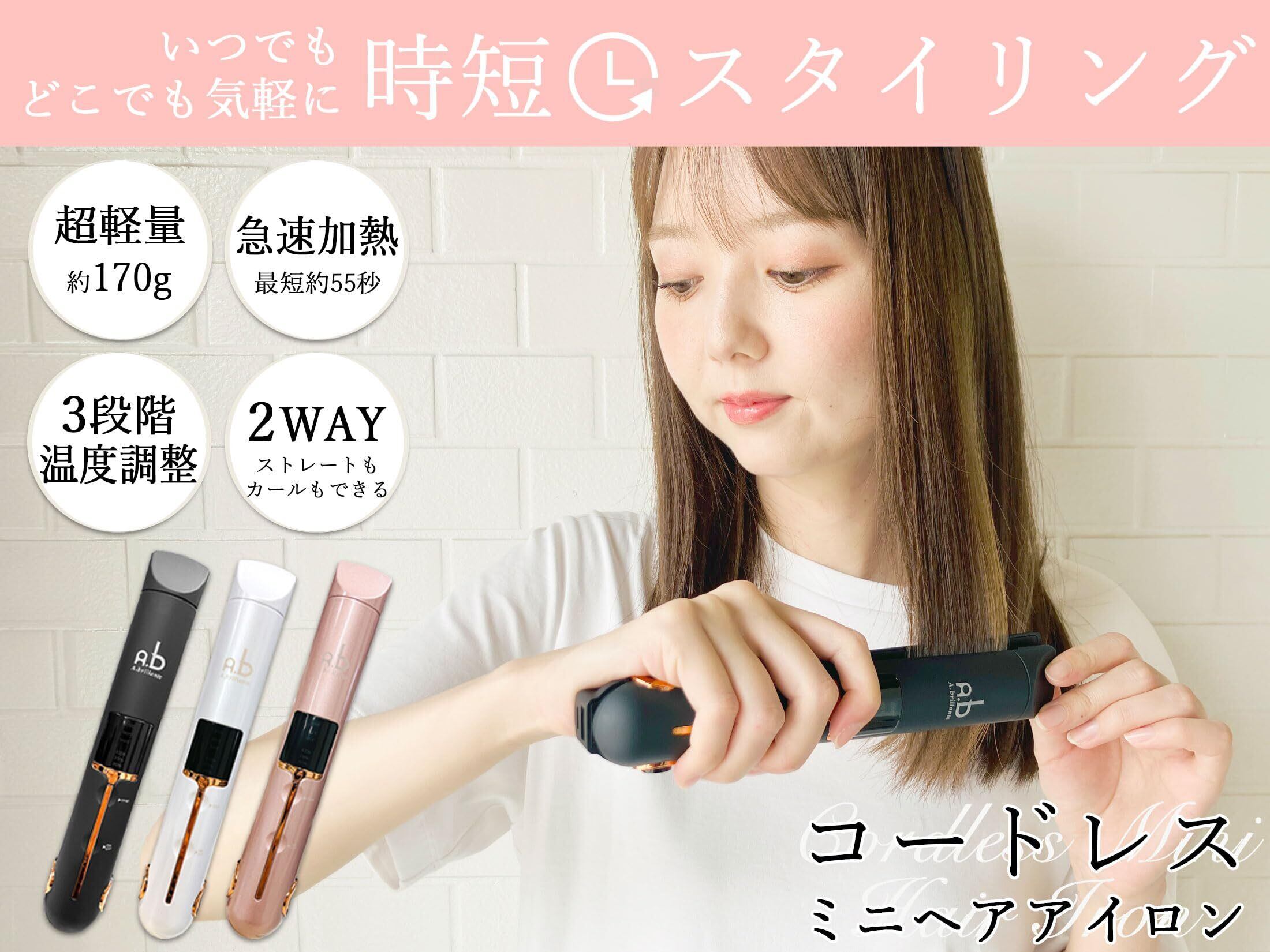 A.brillante コードレス ヘアアイロン ストレート ミニ 時短 急速加熱 2way 軽量 コンパクト 小型 最高205℃ 3段階温度調整 持ち運び 旅行 車中泊 アウトドア CHI01-BK | BASE SHOP
