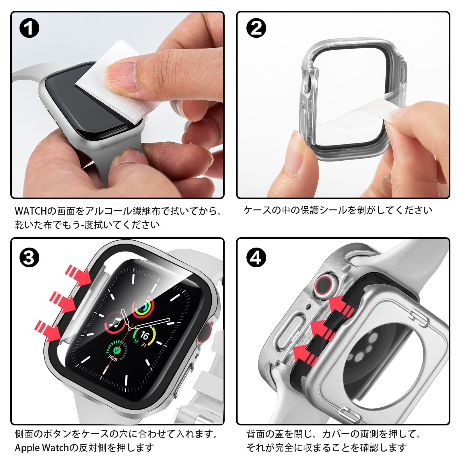 【防水・防塵ケース】シーリングリング内蔵したアッApple Watch ケース、アップルウォッチの画面にぴったりとフィットし、アップルウォッチ前面カバーと背面カバーの2 in 1全周保護設計で,表面から裏面まで 360度の全面保護します、IP67防水、防塵設計。ケースを取り外して水を拭くすることを繰り返す必要はありません。疎水性撥油性抜群の強化ガラス表面により、カバー面に水が溜まらず、シャワー、手洗い、発汗、運動、雨など、日常の使用に適しています。 ※ご注意:ウォッチの画面とカバーの間に水が浸入する場合、保護カバーを取り外し、柔らかい布で水を乾かしてください。