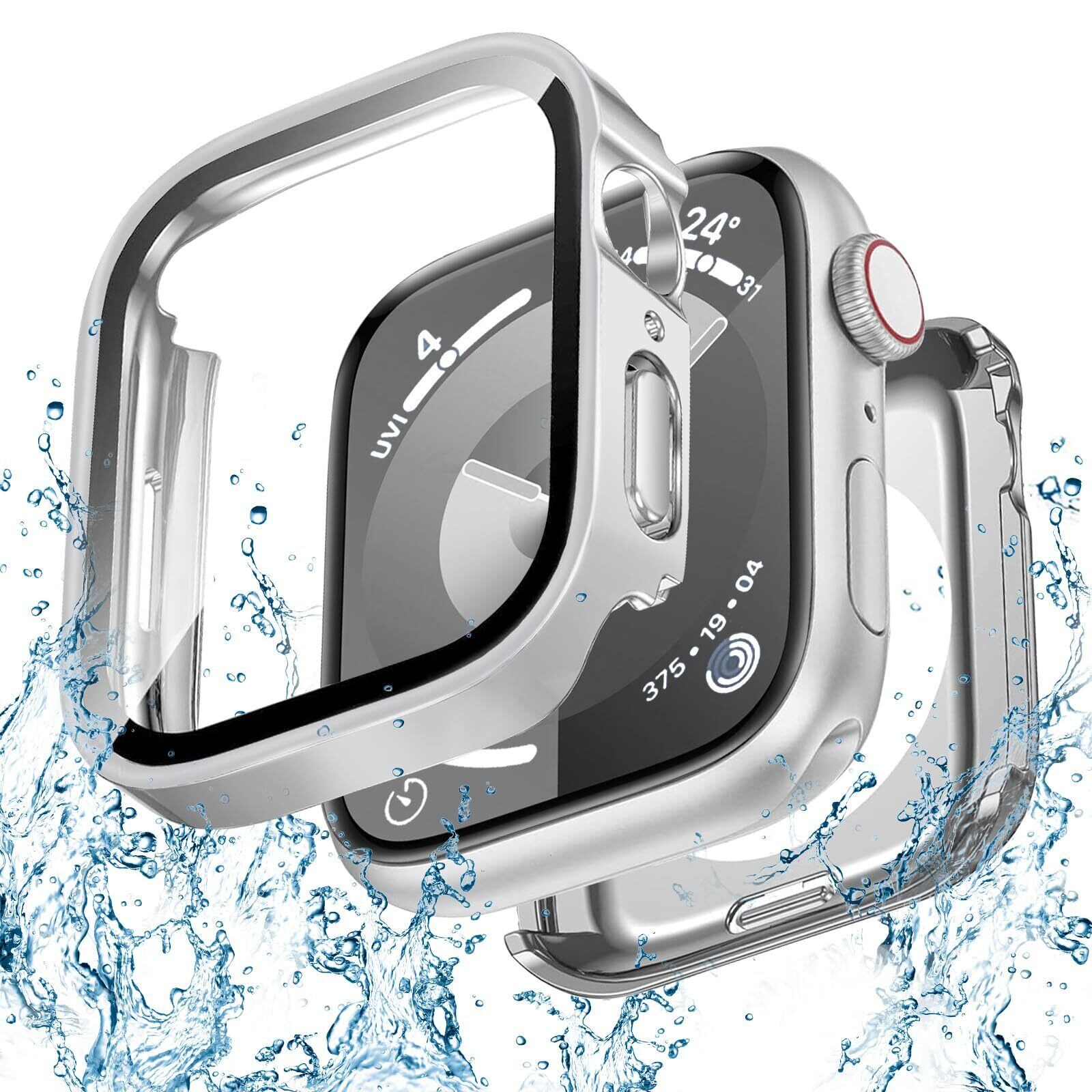 【2in1保護設計】POLINK 対応 アップルウォッチ カバー Series 10/9/8/7/SE/6/5/4 45mm PC素材 強化ガラス 対応 Apple Watch カバー防水 一体型 新デザイン 3D直角エッジ超薄型 高耐久 耐衝撃 高透過率 指紋防止 対応 Apple Watch ケース 全面保護 シルバー
