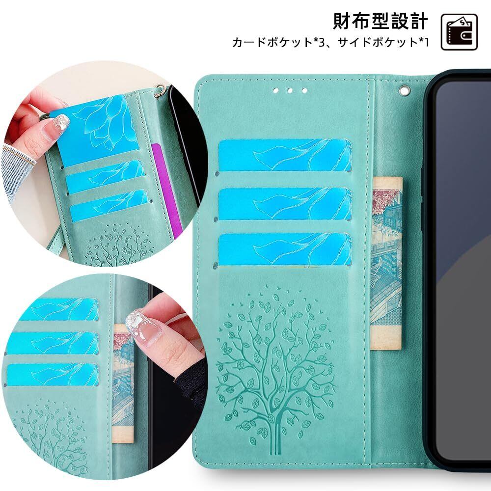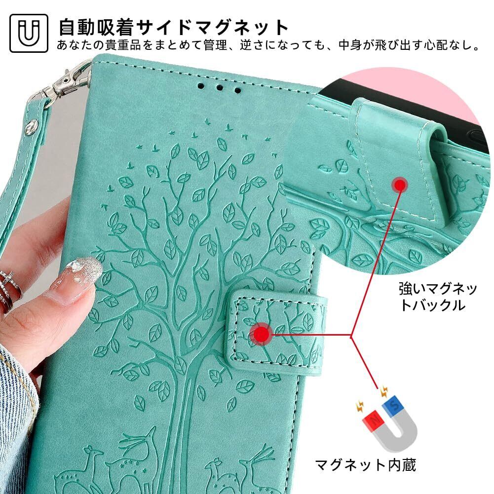 AQUOS wish4 ケース 手帳型 3枚 カード収納 アクオス ウィッシュ4 財布型 カバー SUGOIDAN 携帯ケース カードポケット付き カード レザー スタンド機能 ストラップ付き マグネット内蔵 耐衝撃 全面保護(グリーン) | BASE SHOP