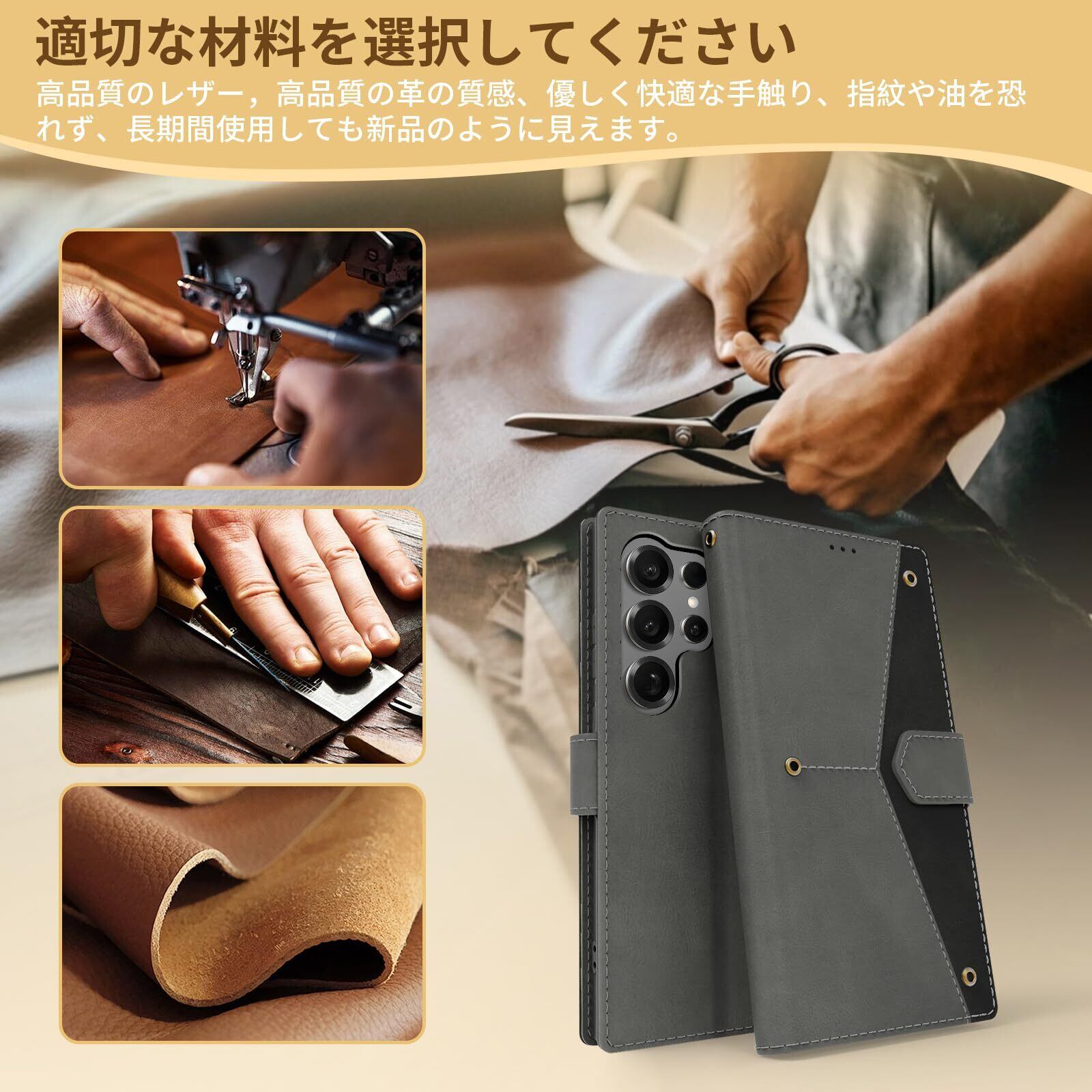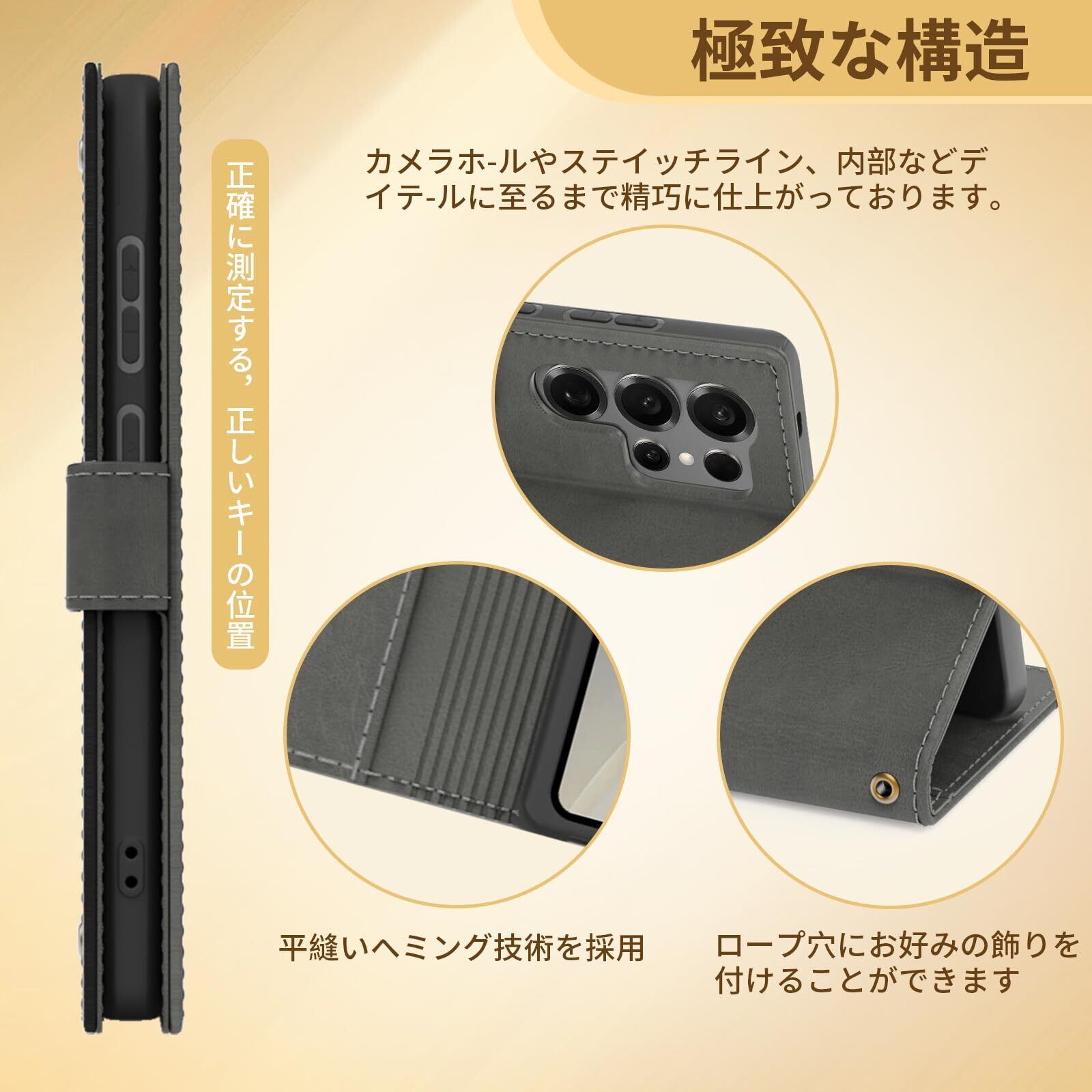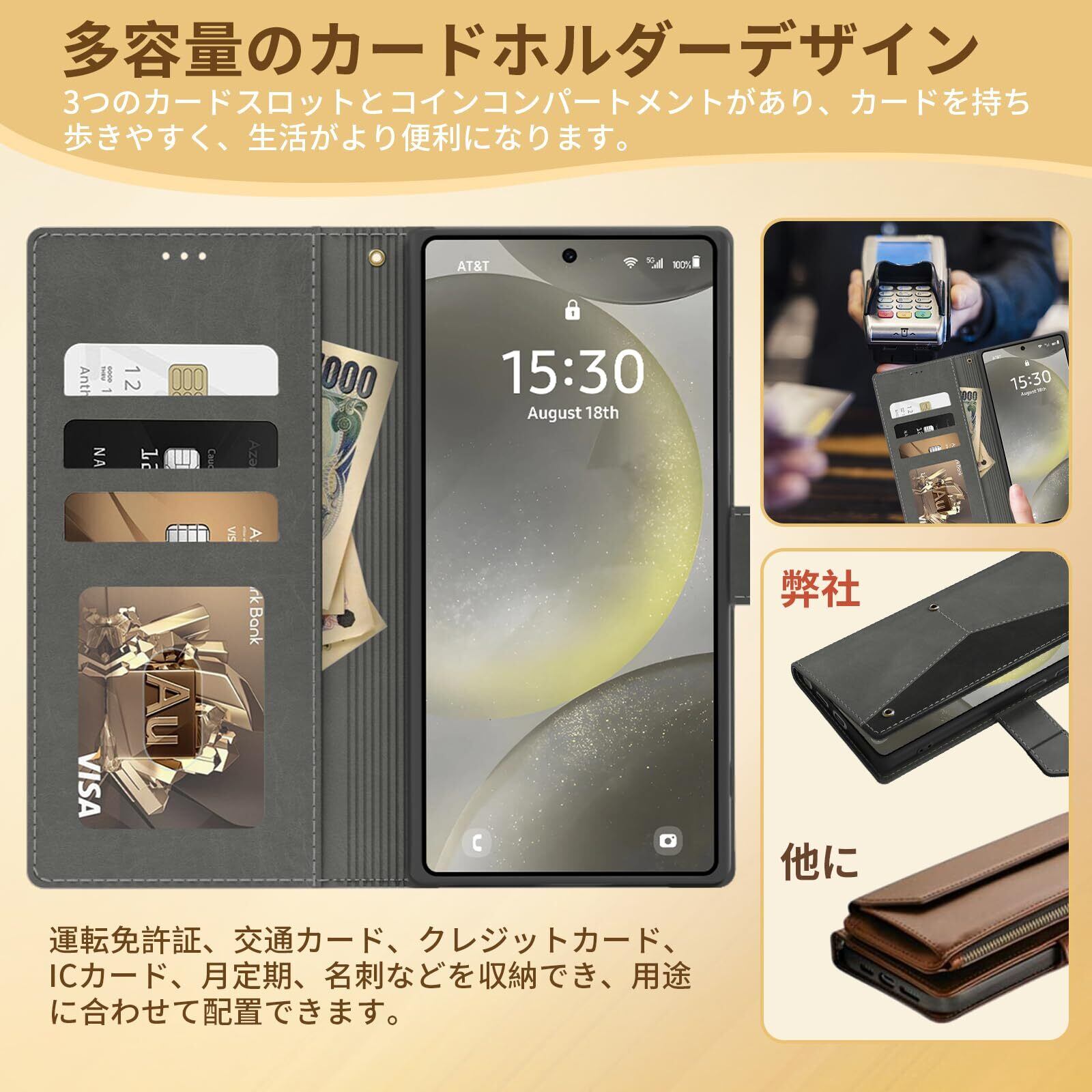Galaxy S25 Ultra ケース 手帳型 財布型 全面保護 耐衝撃 ギャラクシー S25 Ultra スマホケース カード収納 肌感レザー ラップホール付き 横置き機能付き マグネット内蔵 SC-52F SCG32 携帯カバー 指紋防止 耐摩擦 ファッション ベルトマグネット,グレー
