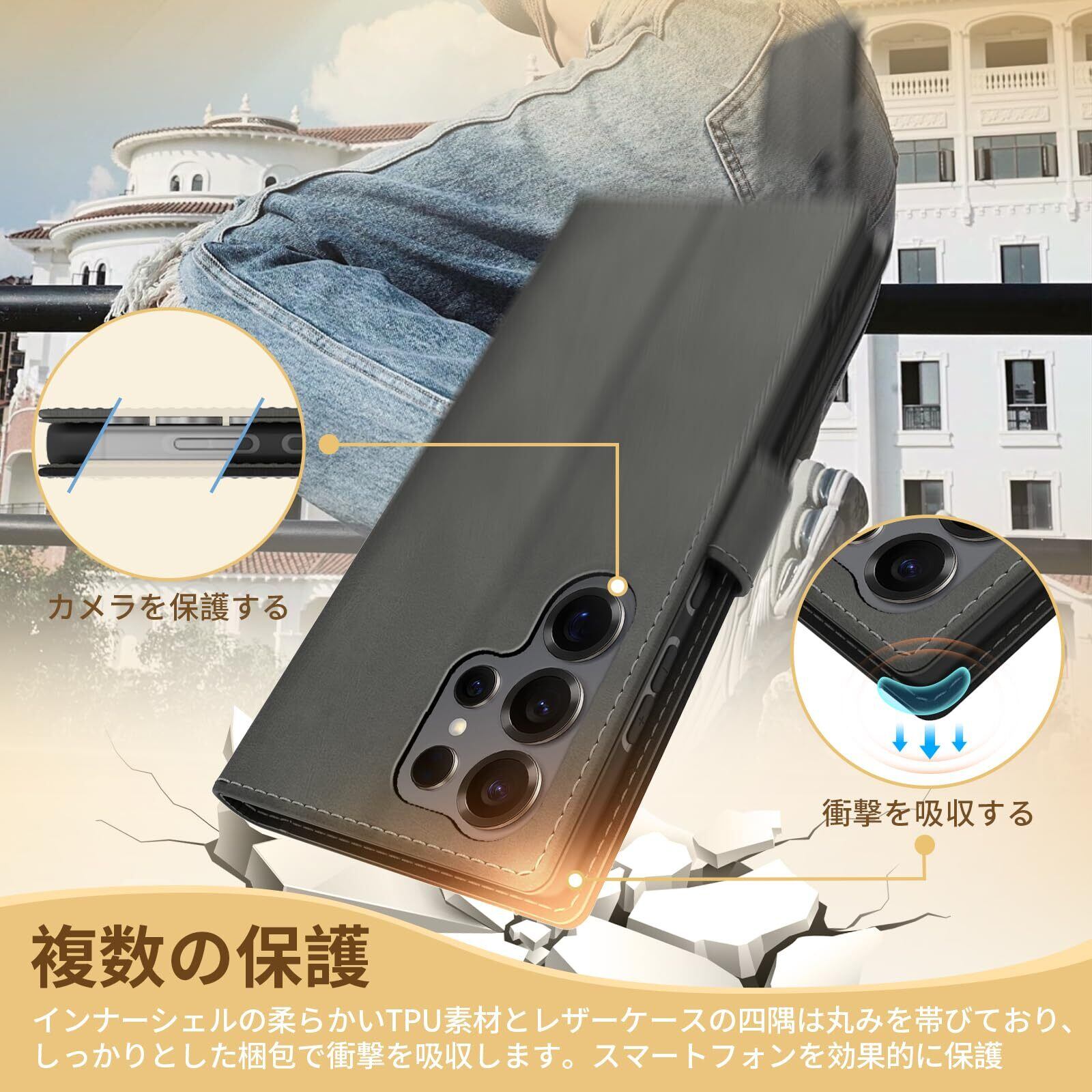 Galaxy S25 Ultra ケース 手帳型 財布型 全面保護 耐衝撃 ギャラクシー S25 Ultra スマホケース カード収納 肌感レザー ラップホール付き 横置き機能付き マグネット内蔵 SC-52F SCG32 携帯カバー 指紋防止 耐摩擦 ファッション ベルトマグネット,グレー | BASE SHOP